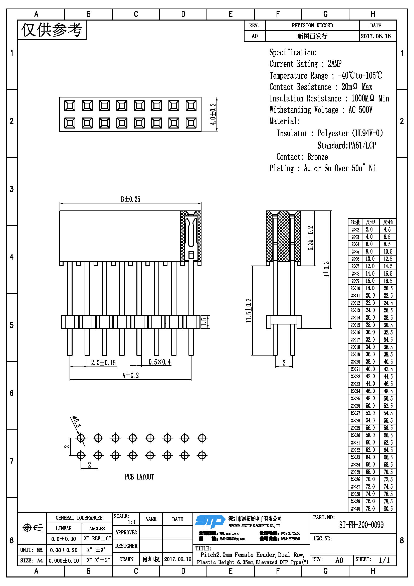- 产品描述:PIN:2*2P-2*40P H:6.35+1.5MM