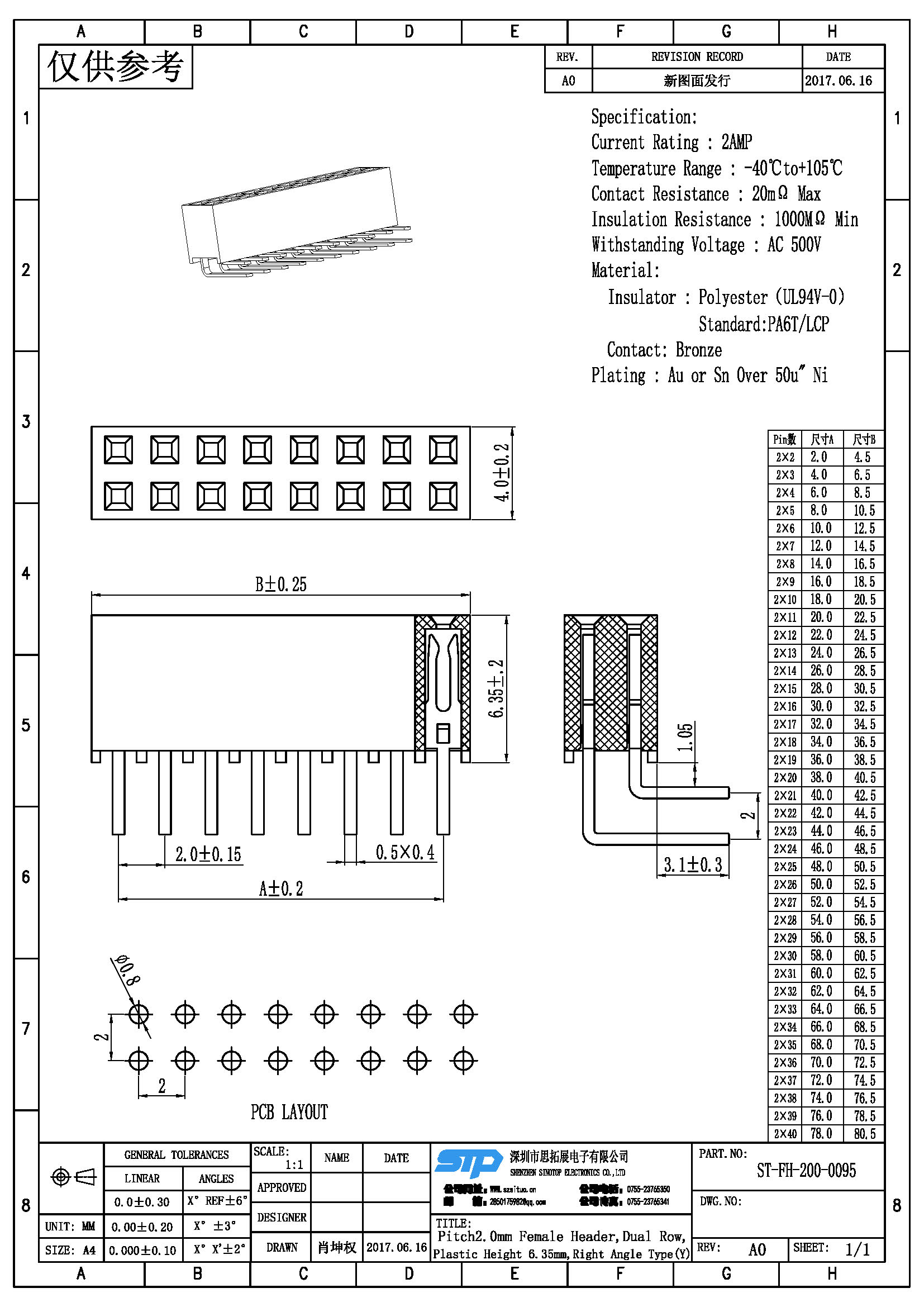 - 产品描述:PIN:2*2P-2*40P H:6.35MM