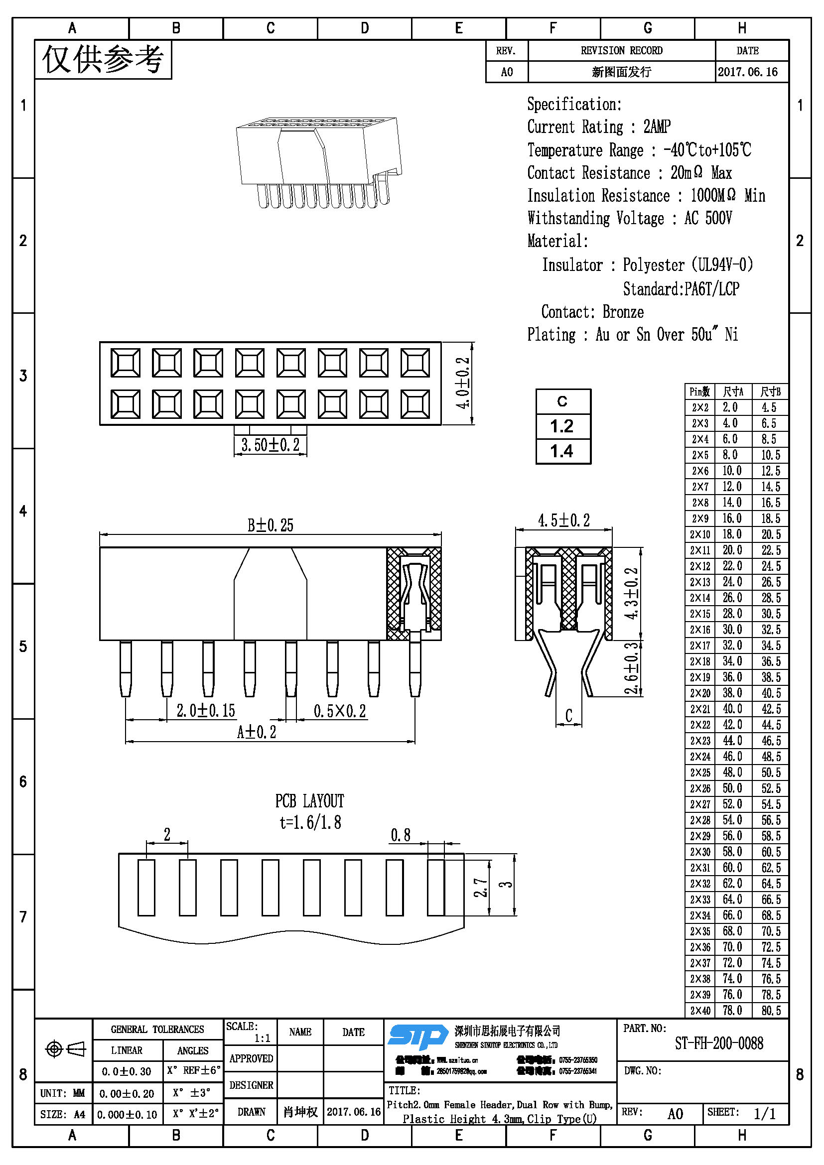- 产品规格:2.0MM双排母,夹板带防呆,U端