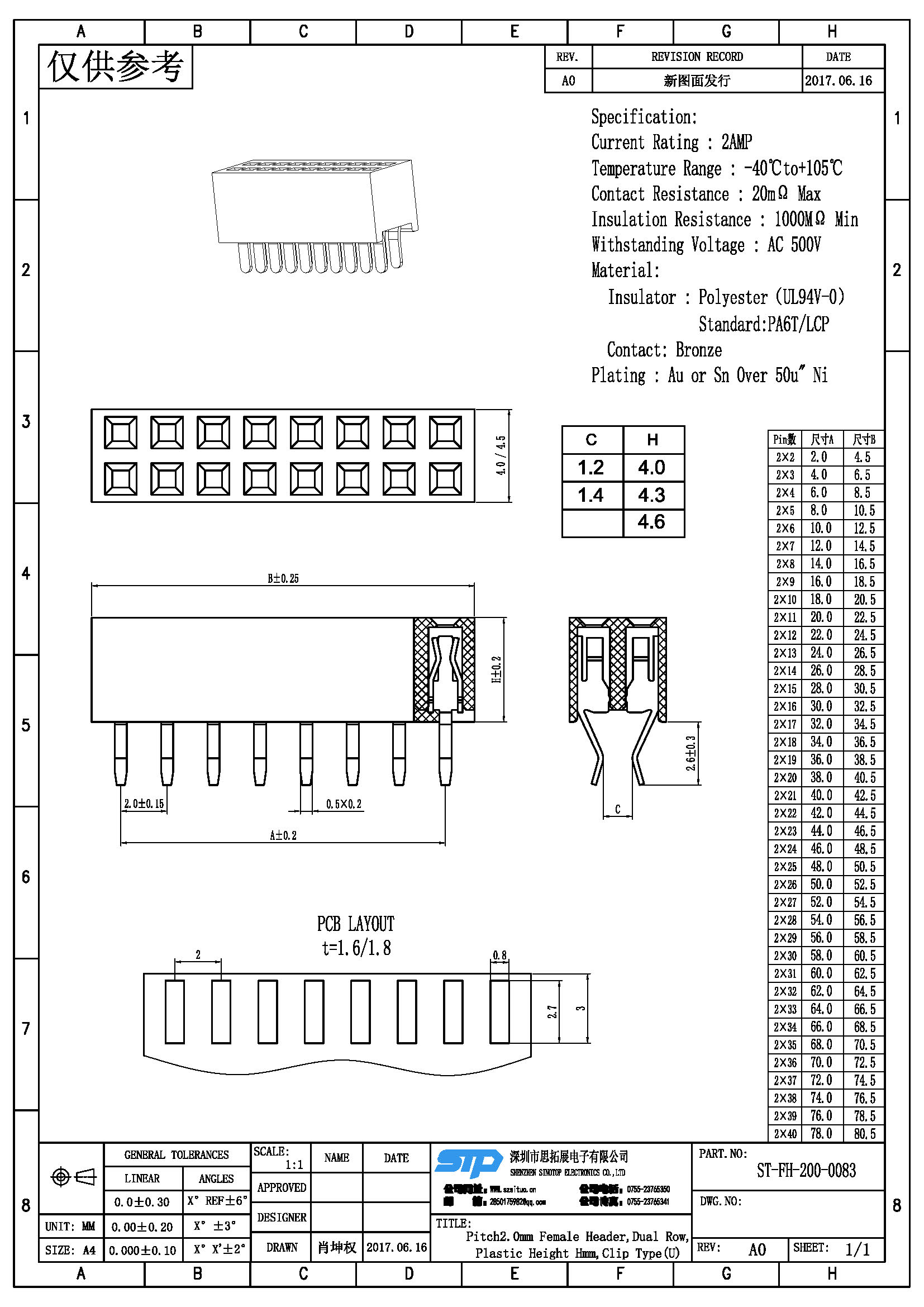 Spec:Pitch2.00MM Female Header,Dual Row, Clip Type (U)