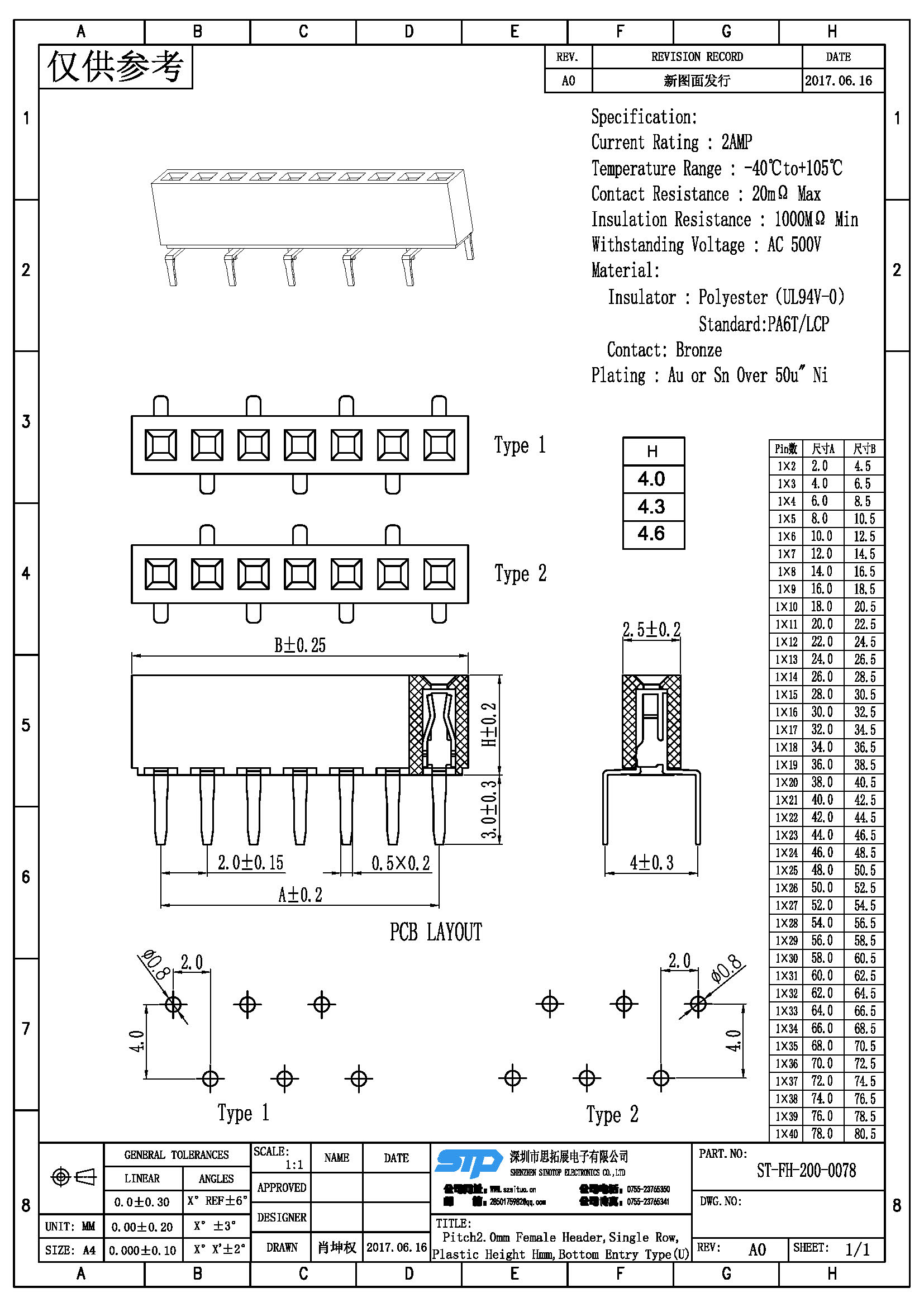 - 产品描述:PIN:1*2P-1*40P H:4.0/4.3/4.6MM
