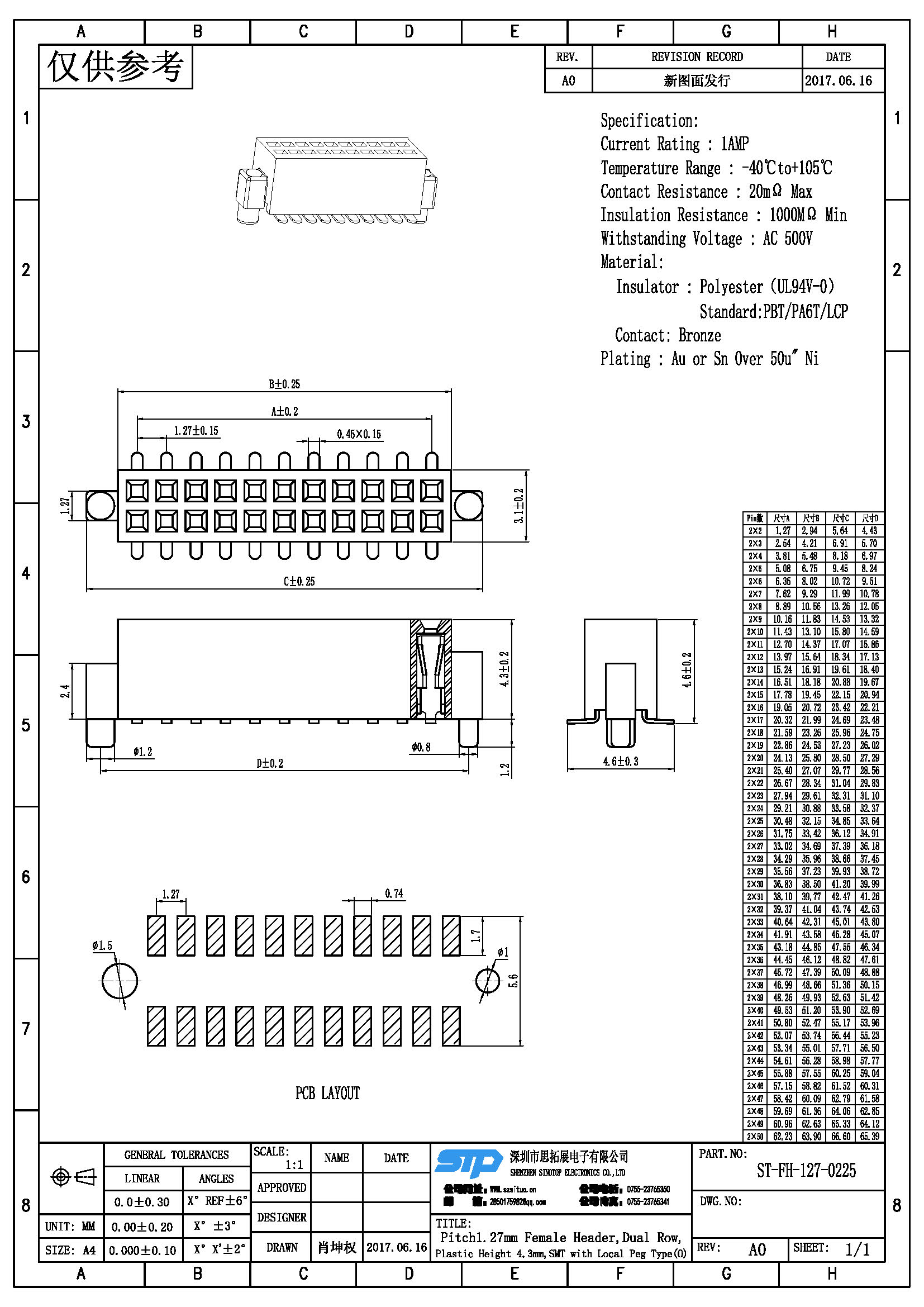 - 产品描述:PIN:2*2P-2*50P H:4.30MM