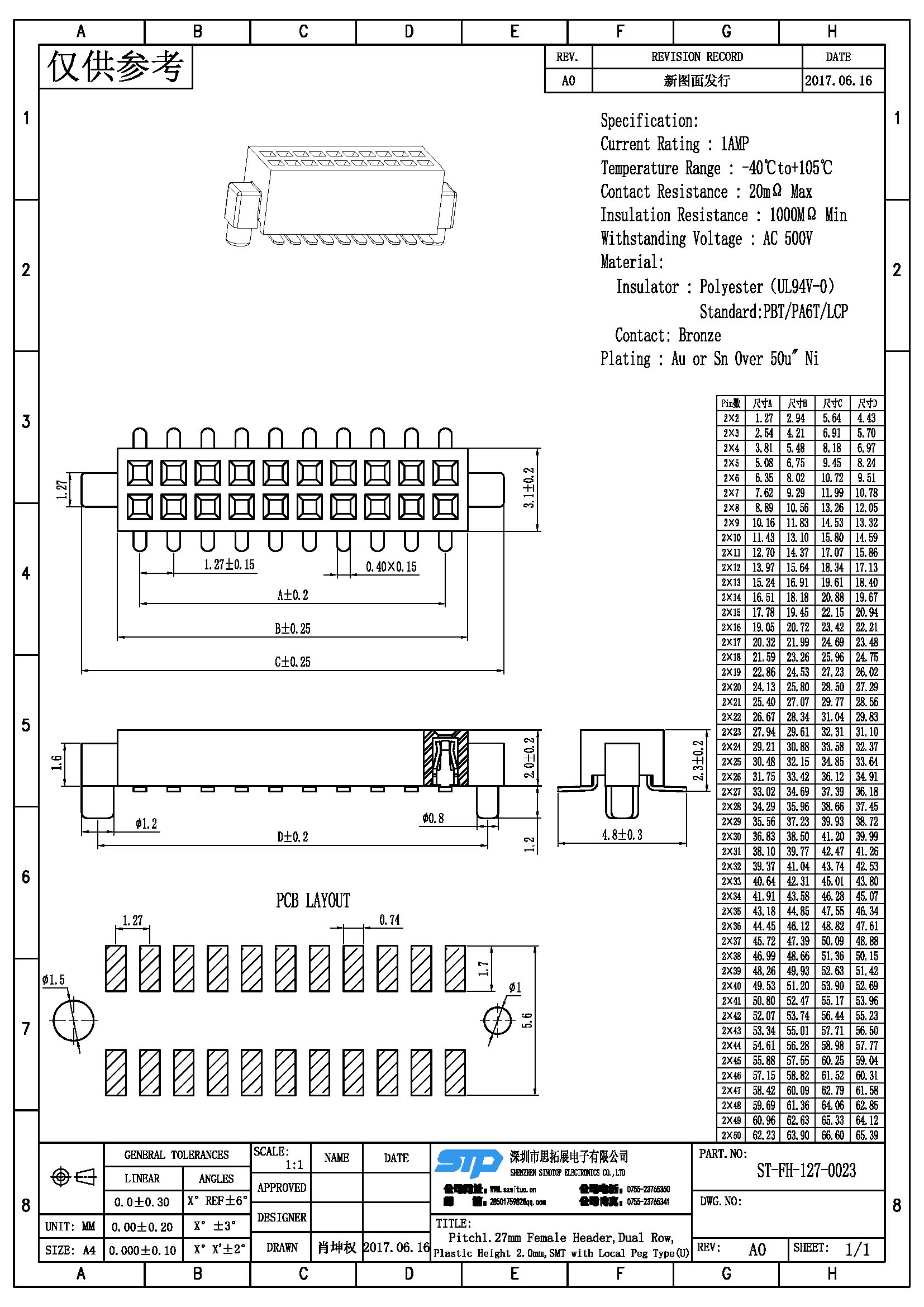 - 产品规格:1.27MM双排母,SMT,带外柱,U端
