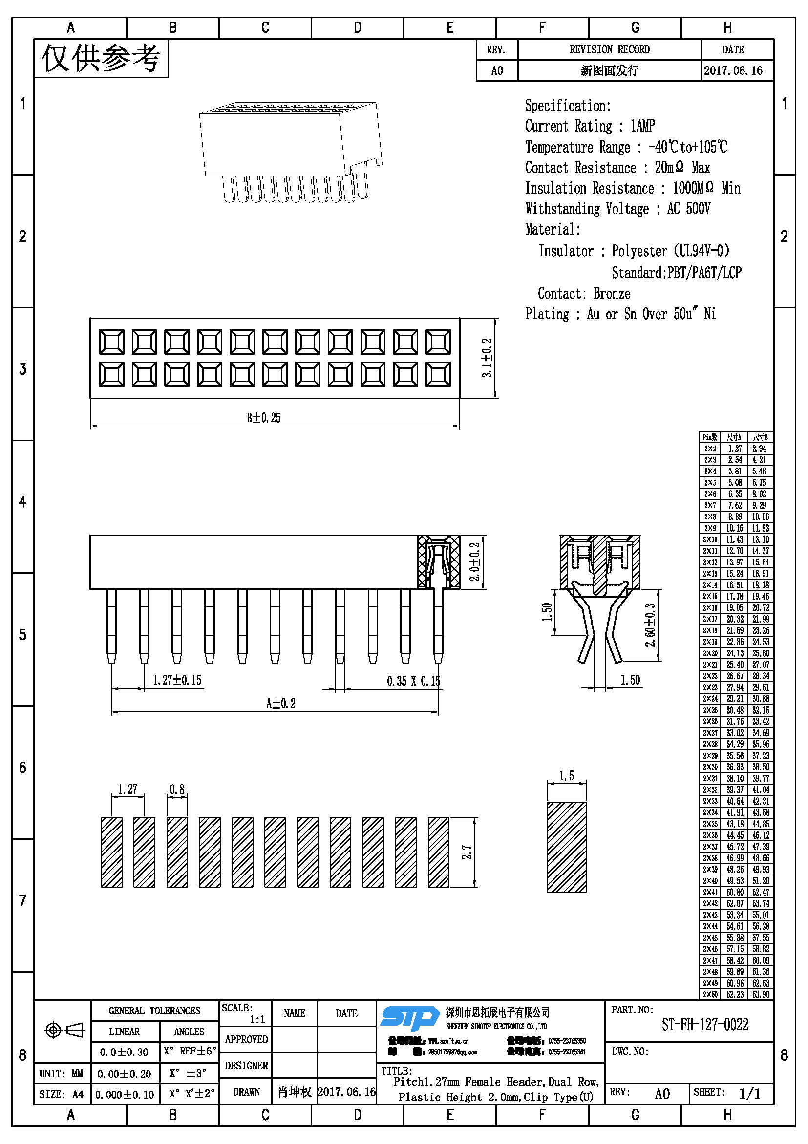 - 产品规格:1.27MM双排母,夹板,U型端子