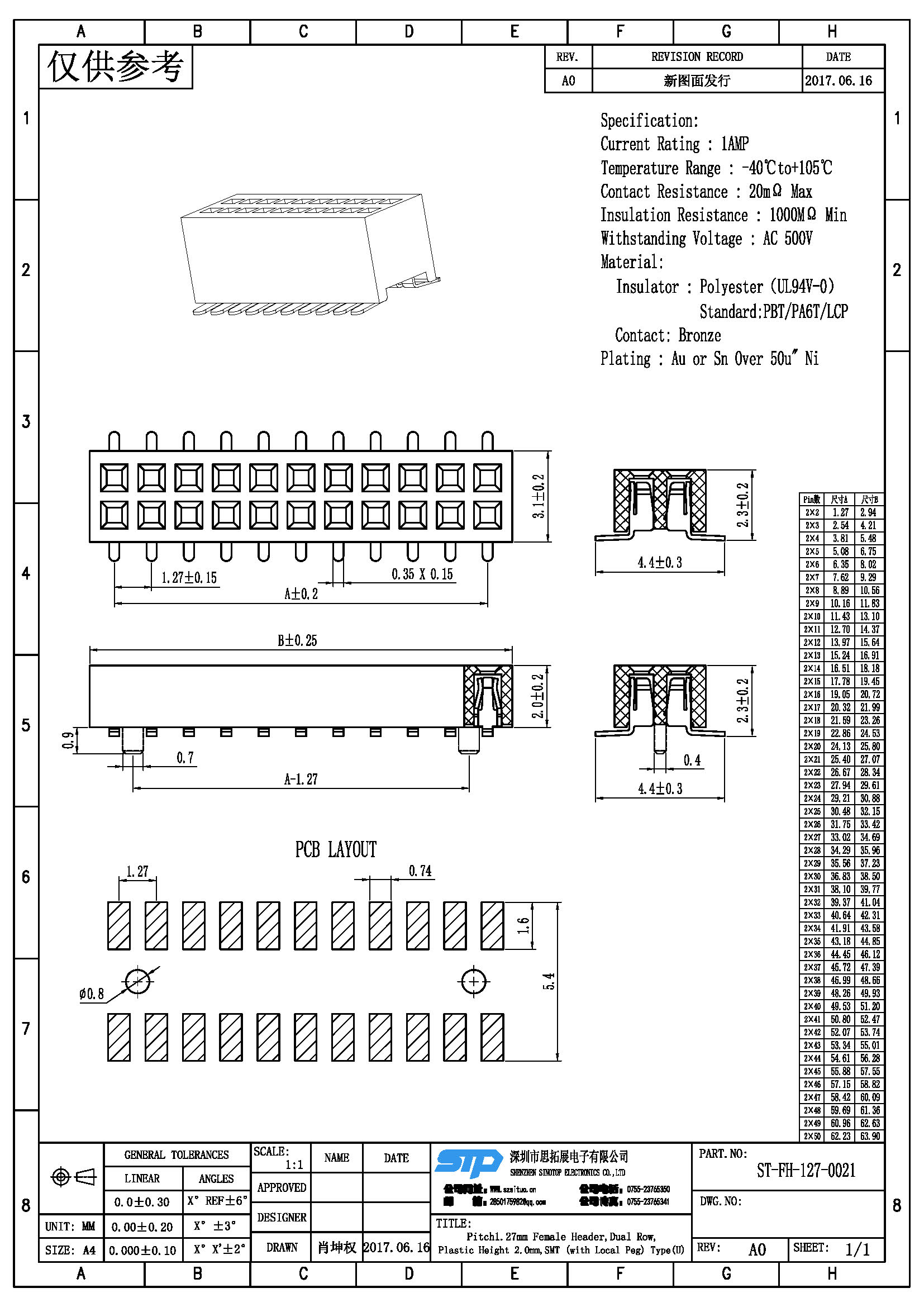 - 产品规格:1.27MM双排母,SMT,U型端子