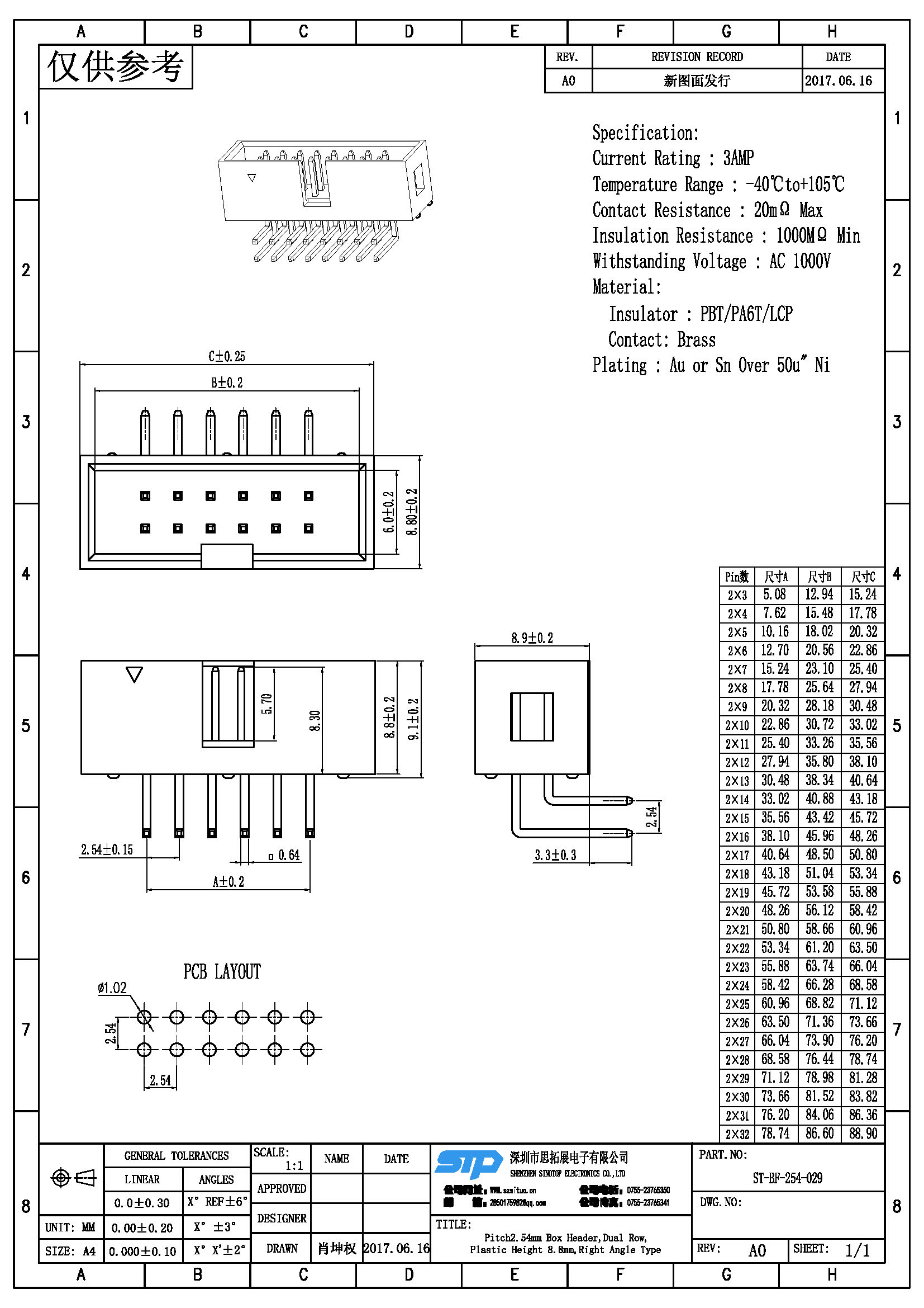 Pitch:2.54MM