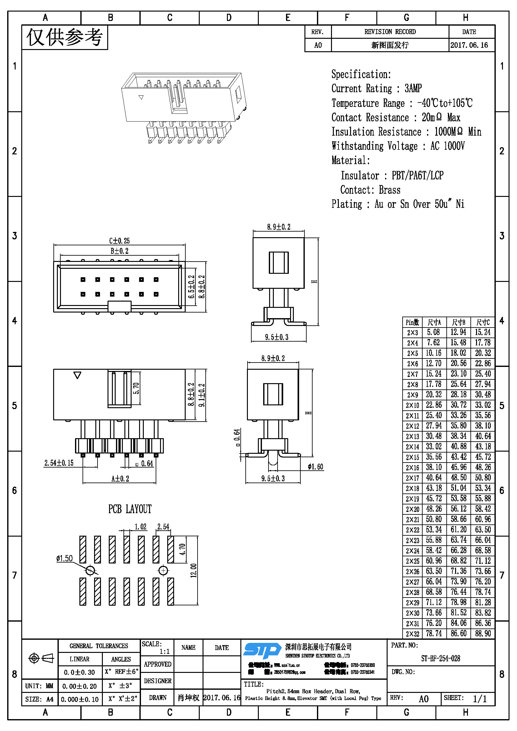 Pitch:2.54MM