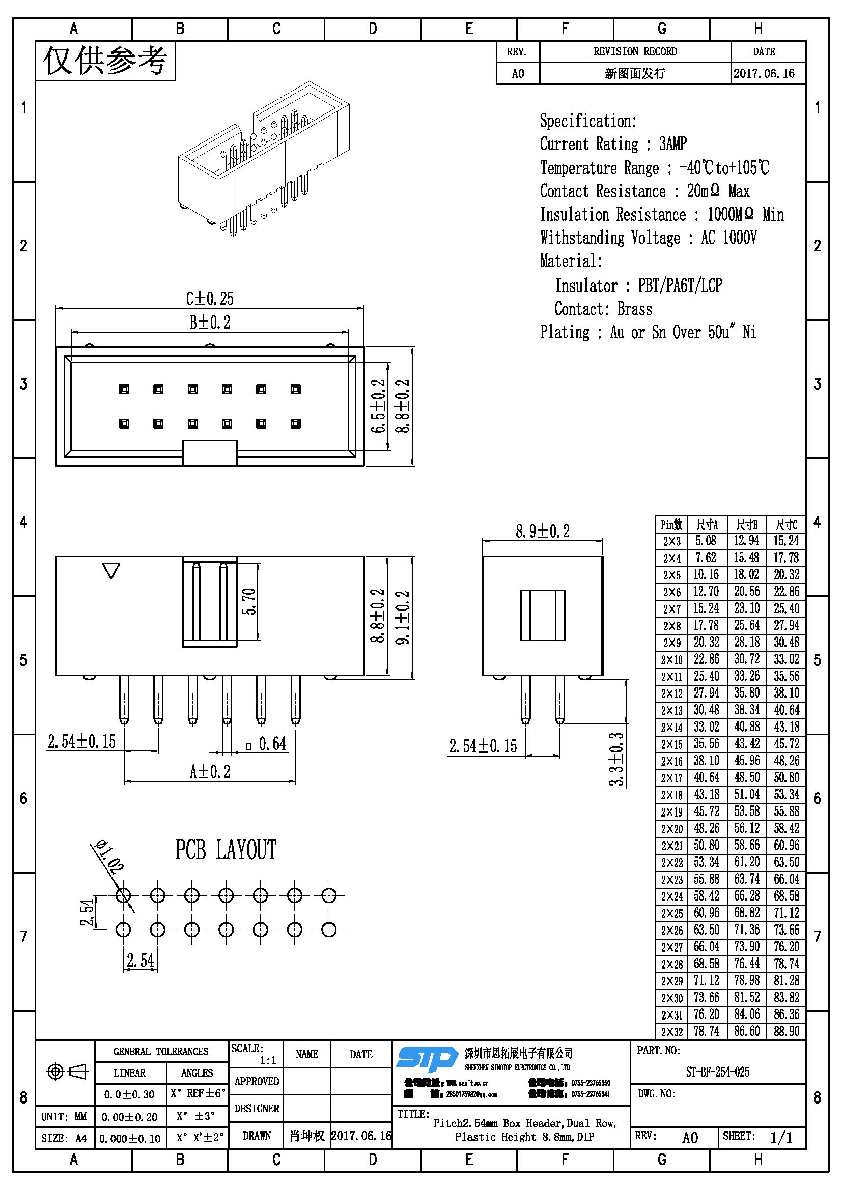 Pitch:2.54MM