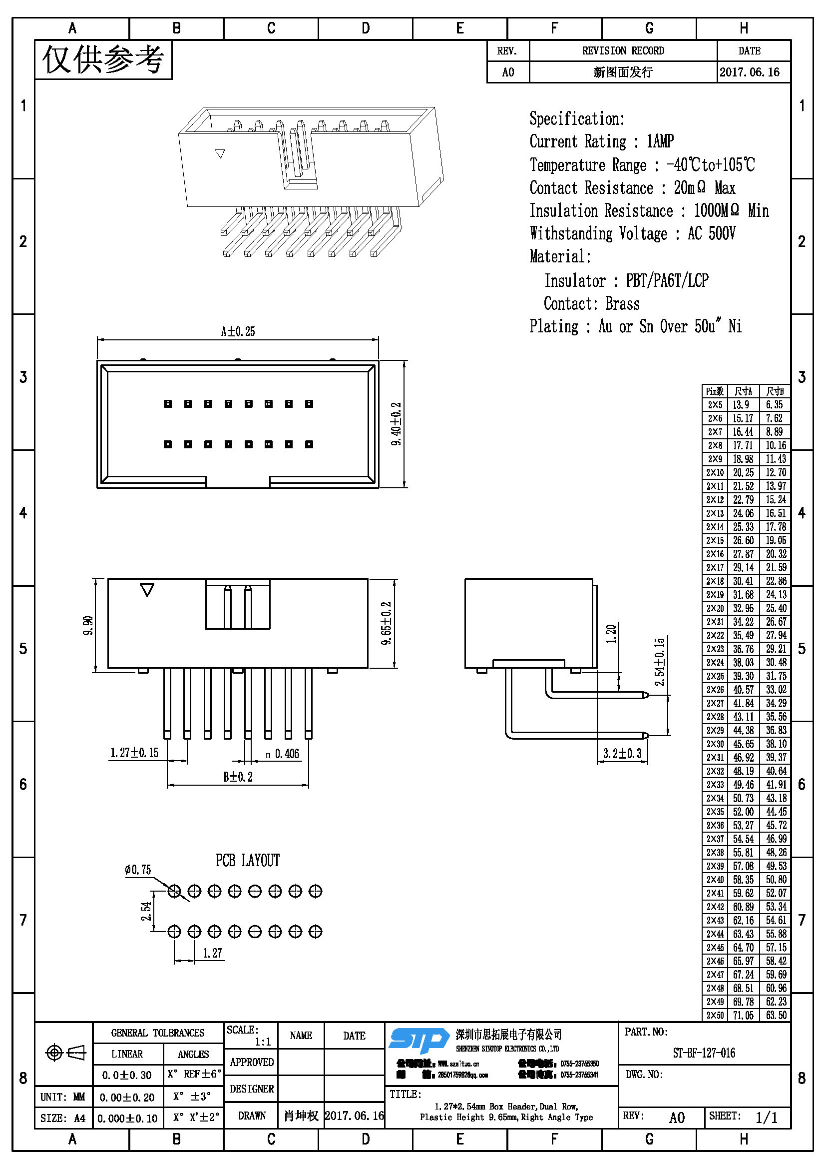 - 产品规格:1.27*2.54MM简易牛角,90度