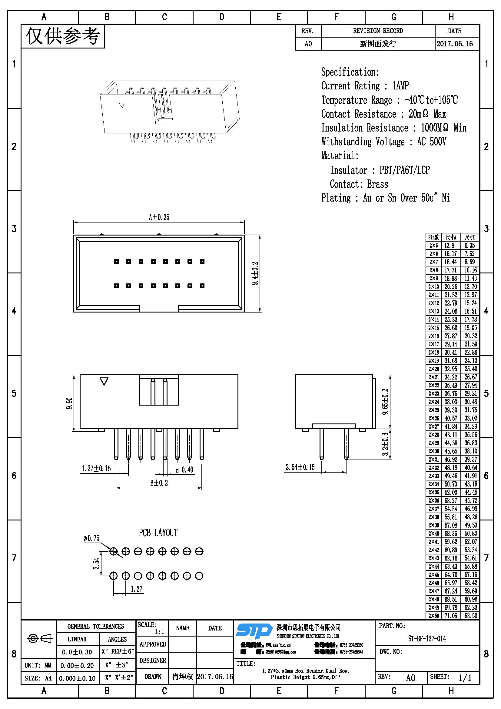 Pitch:1.27MM*2.54MM
