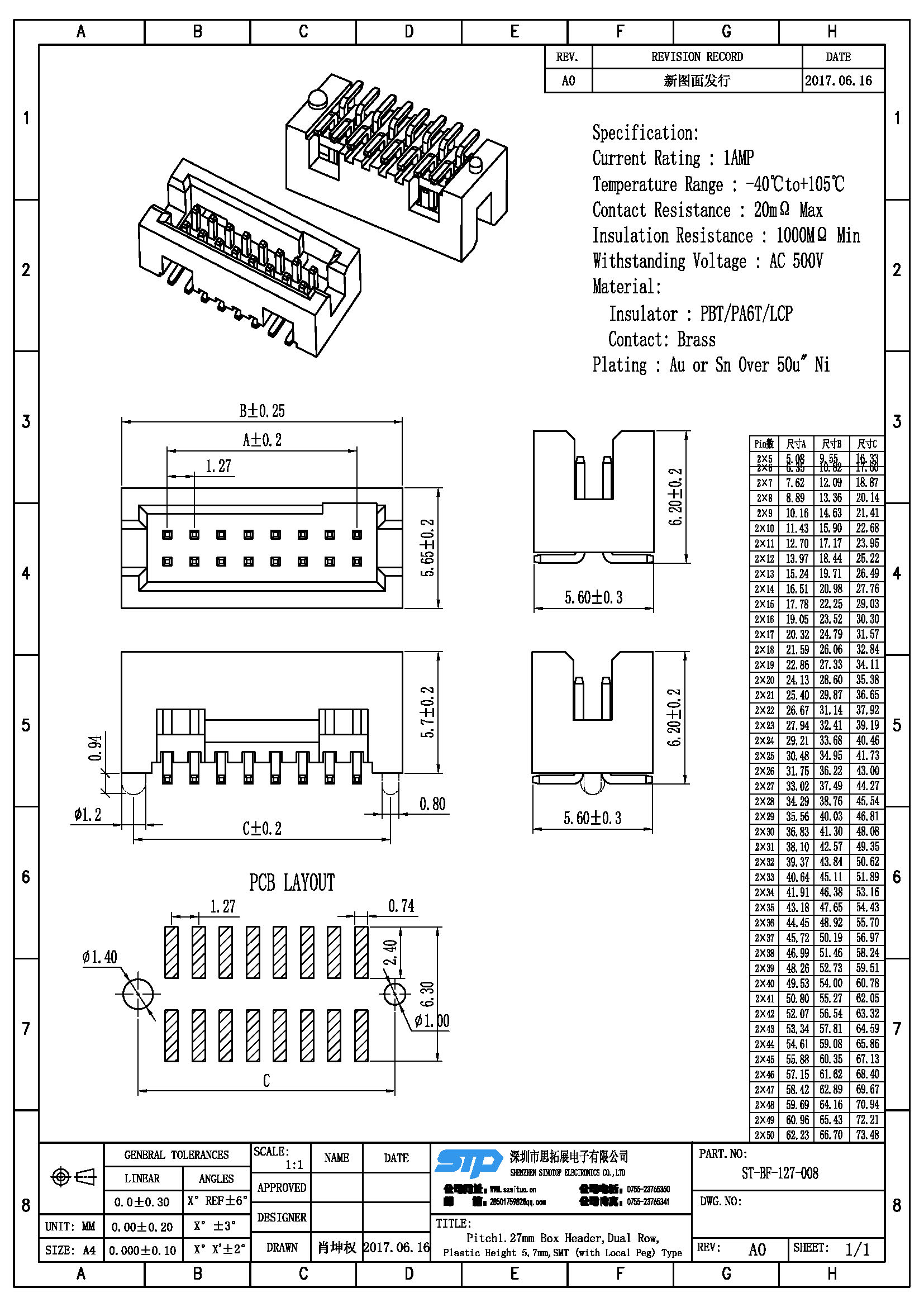 Pitch:1.27MM