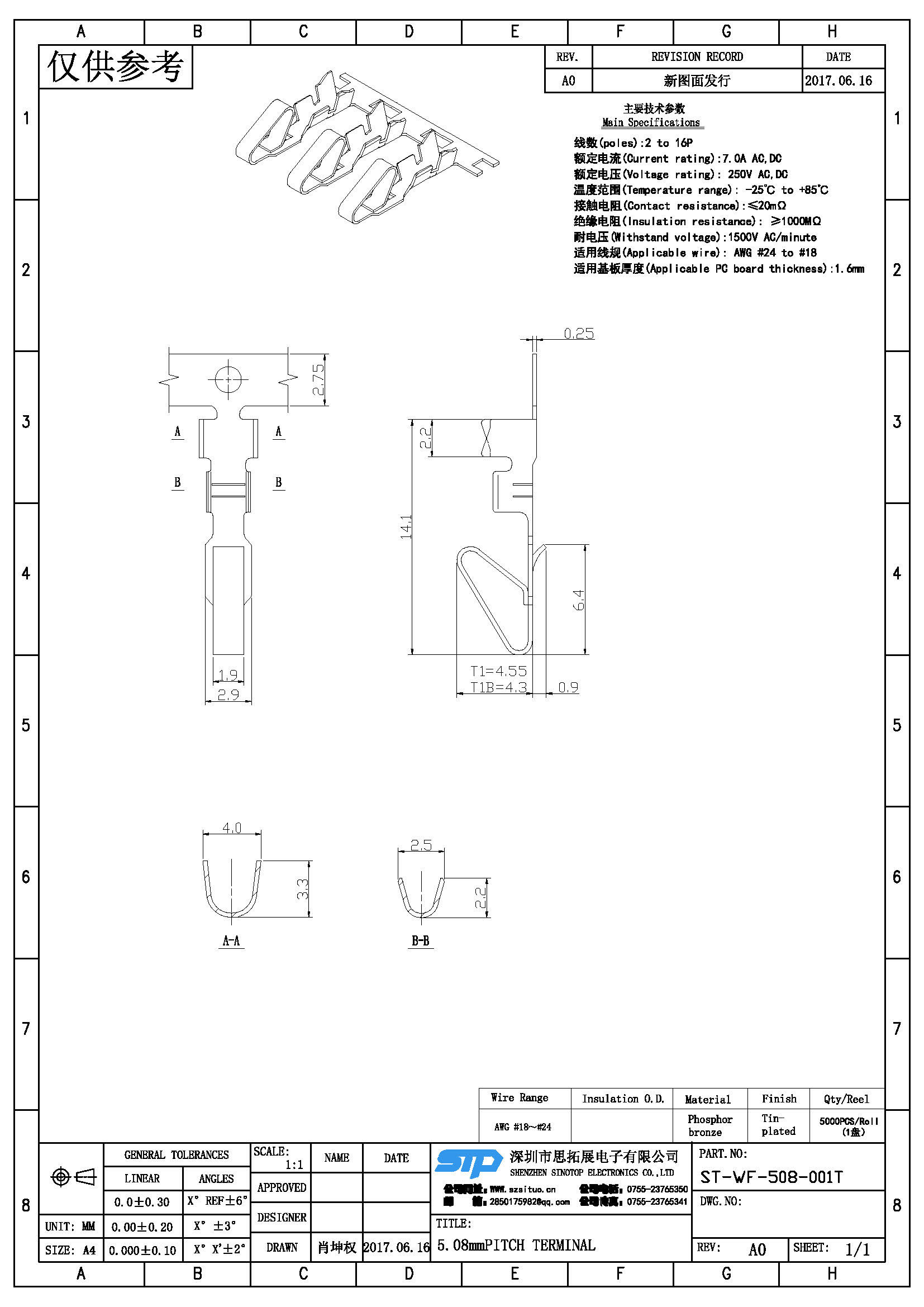 - 产品规格:5.08MM线端端子,L:14.10MM