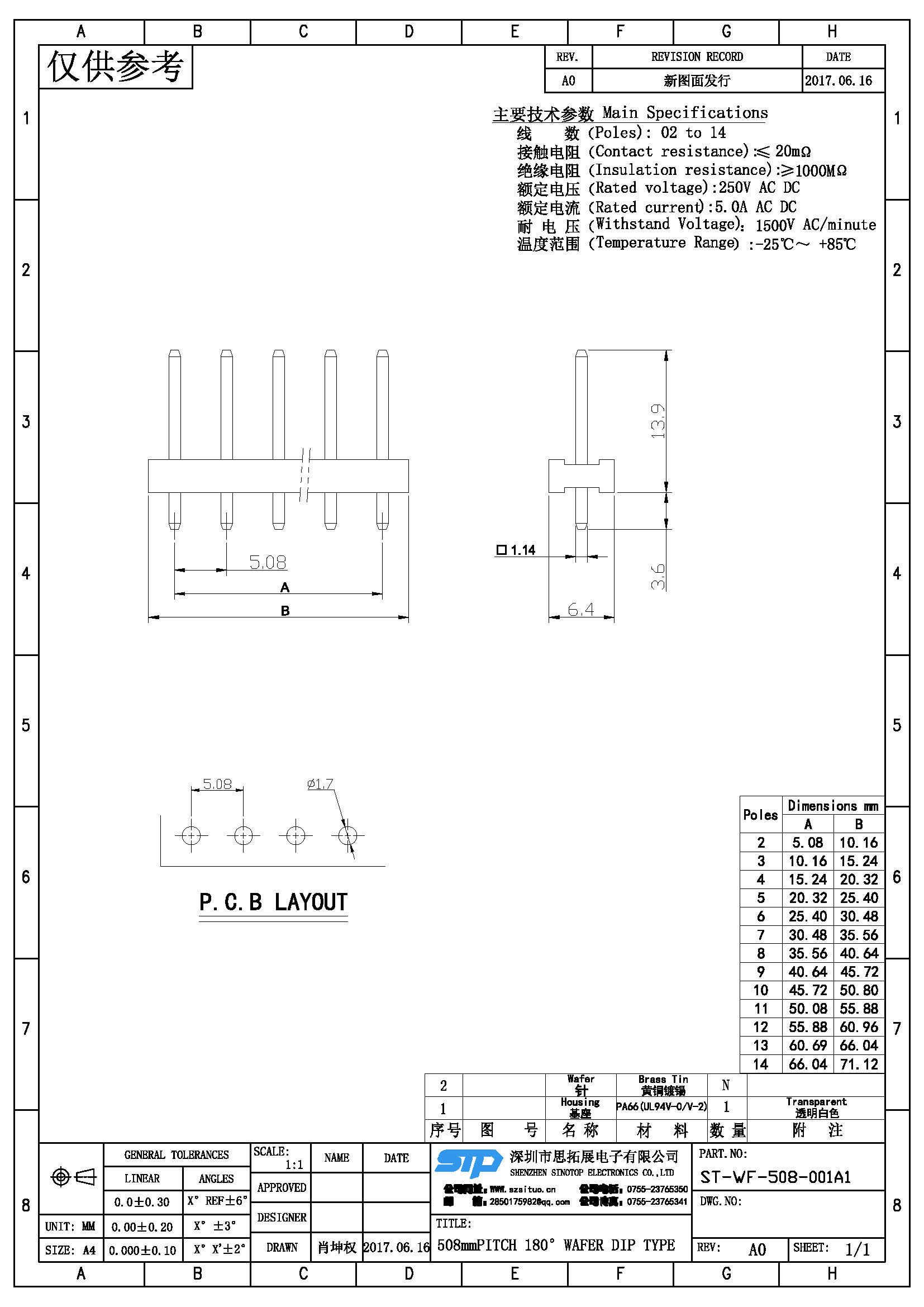 Spec:5.08mm PITCH 180° WAFER DIP TYPE