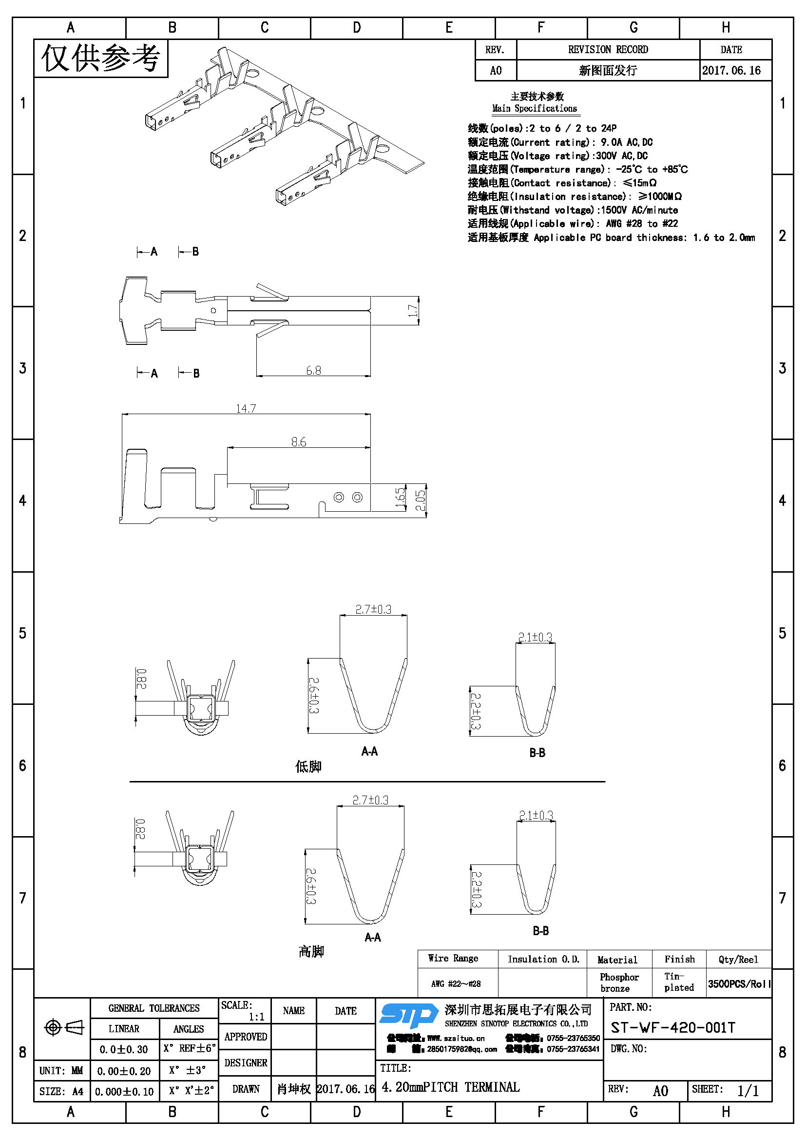 规格型号:4.20MM间距 端子