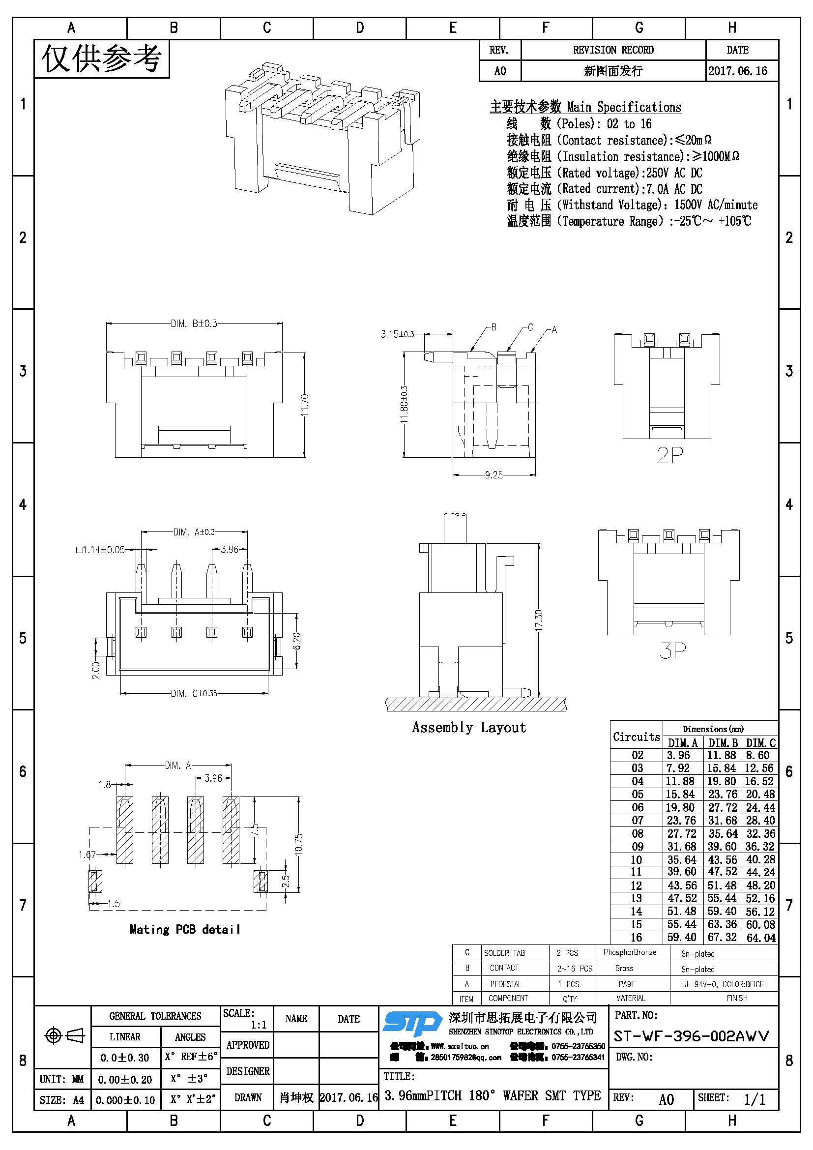 Spec:3.96mm PITCH 180° WAFER SMT TYPE