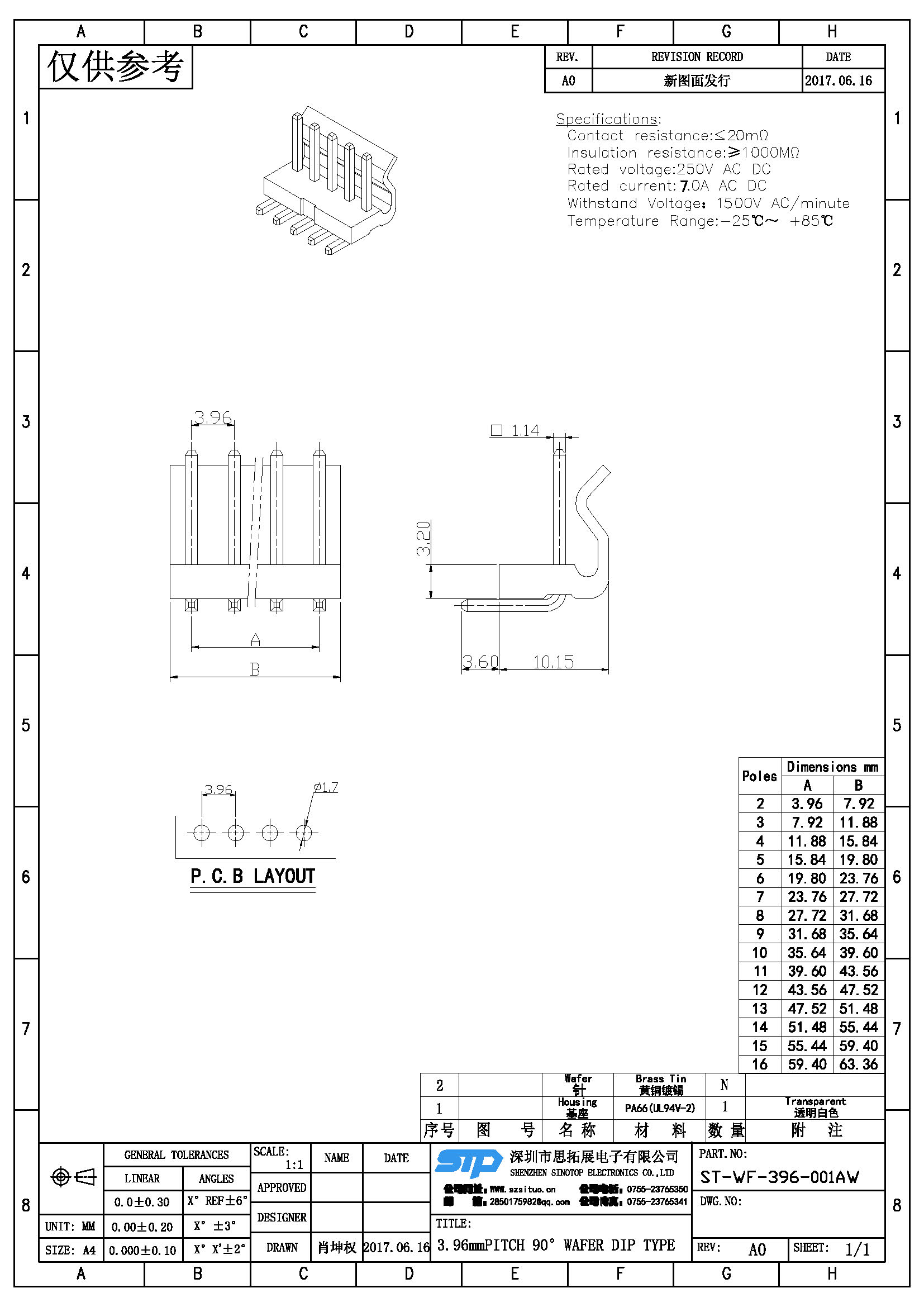 - 产品规格:3.96MM针座,弧形靠背,90度