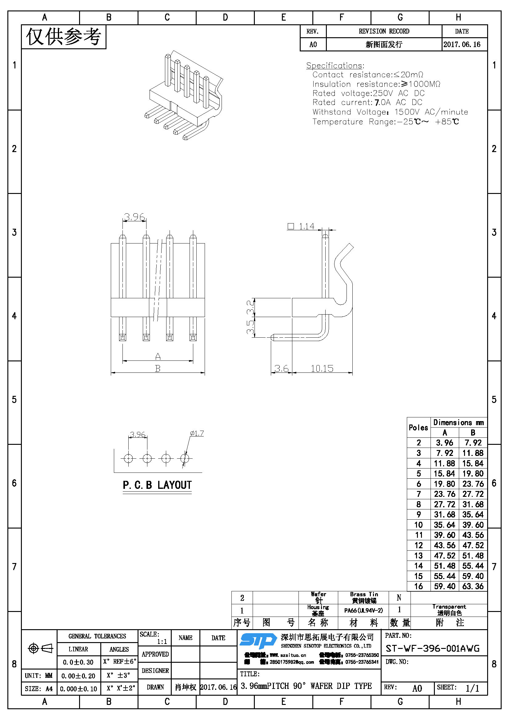 Spec:3.96mm PITCH 90° WAFER DIP TYPE