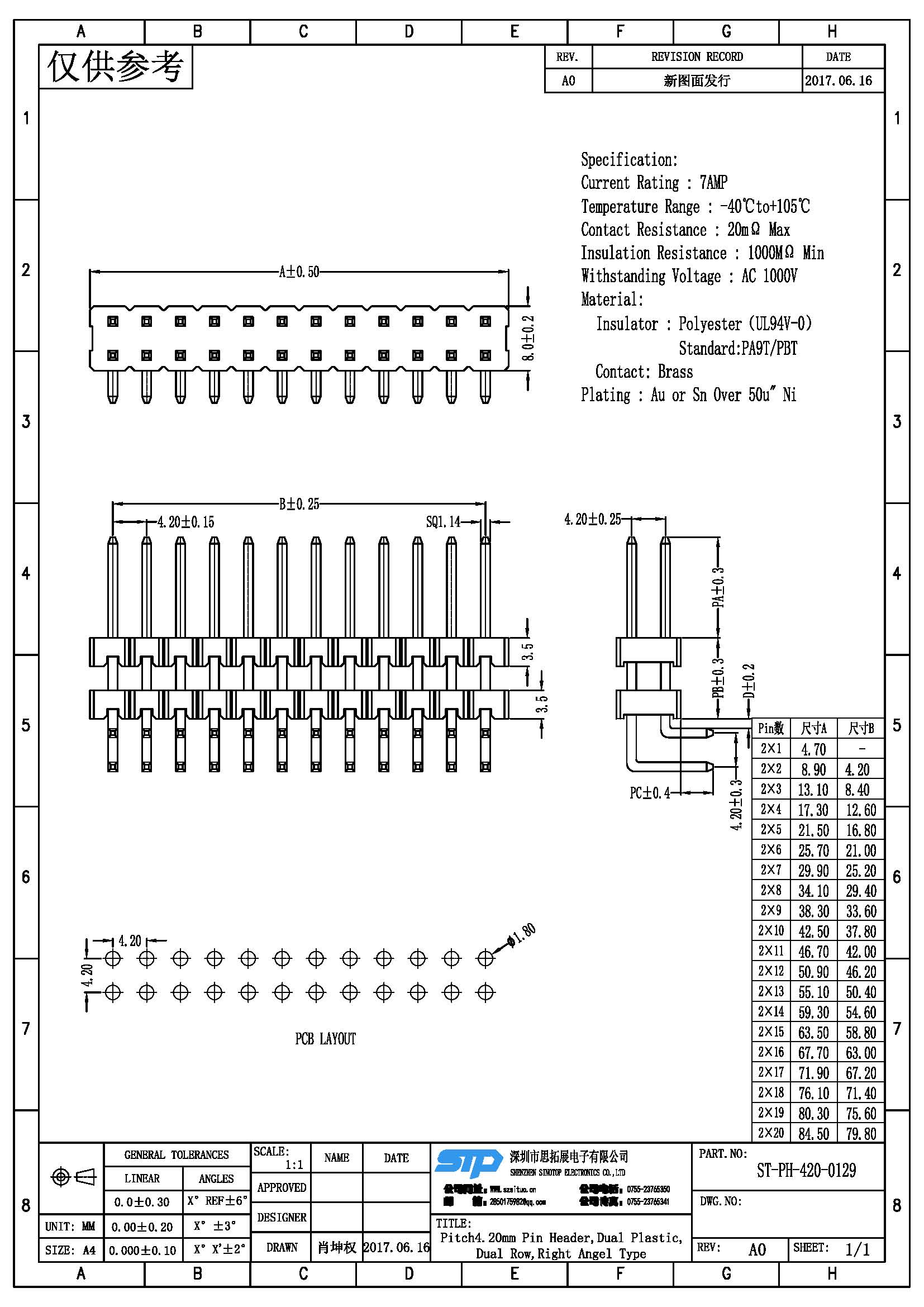 Spec:Pitch4.20mm Pin Header,Dual Plastic,Dual Row,Right angle type