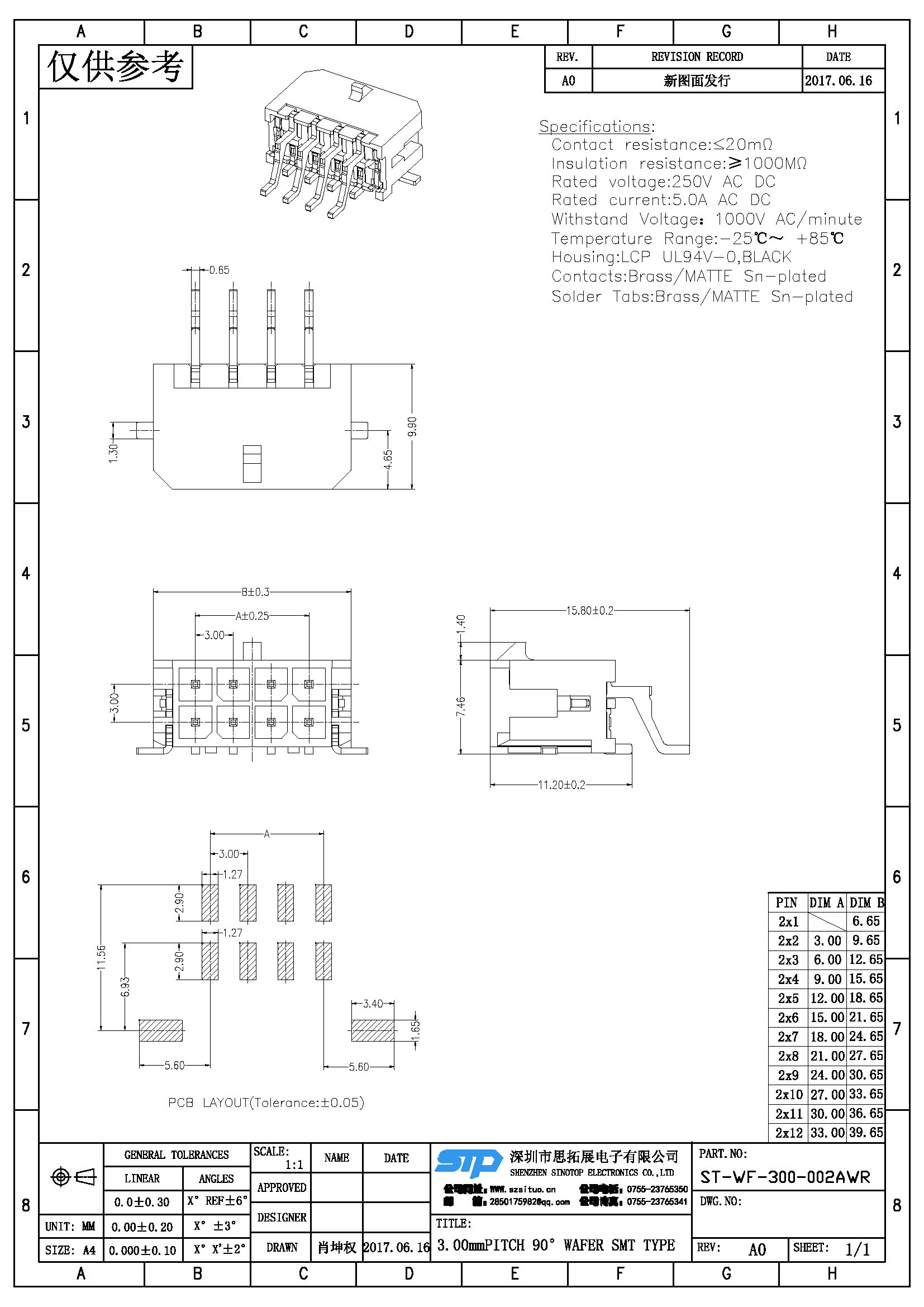 Spec:3.00mm PITCH 90° WAFER SMT TYPE
