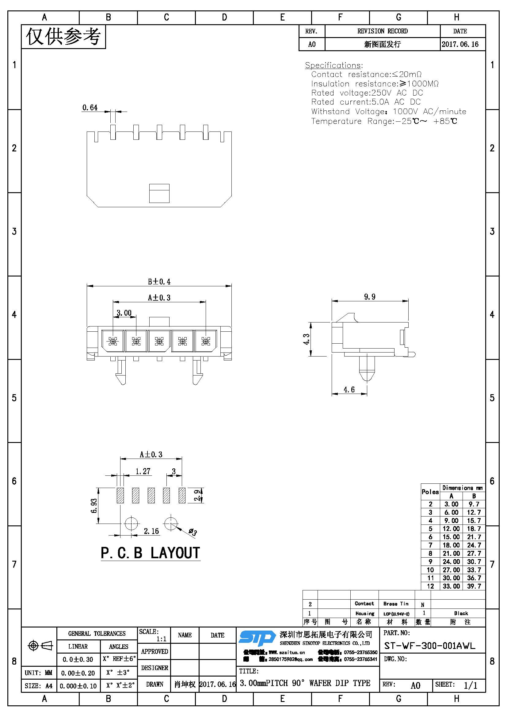 Spec:3.00mm PITCH 90° WAFER SMT TYPE