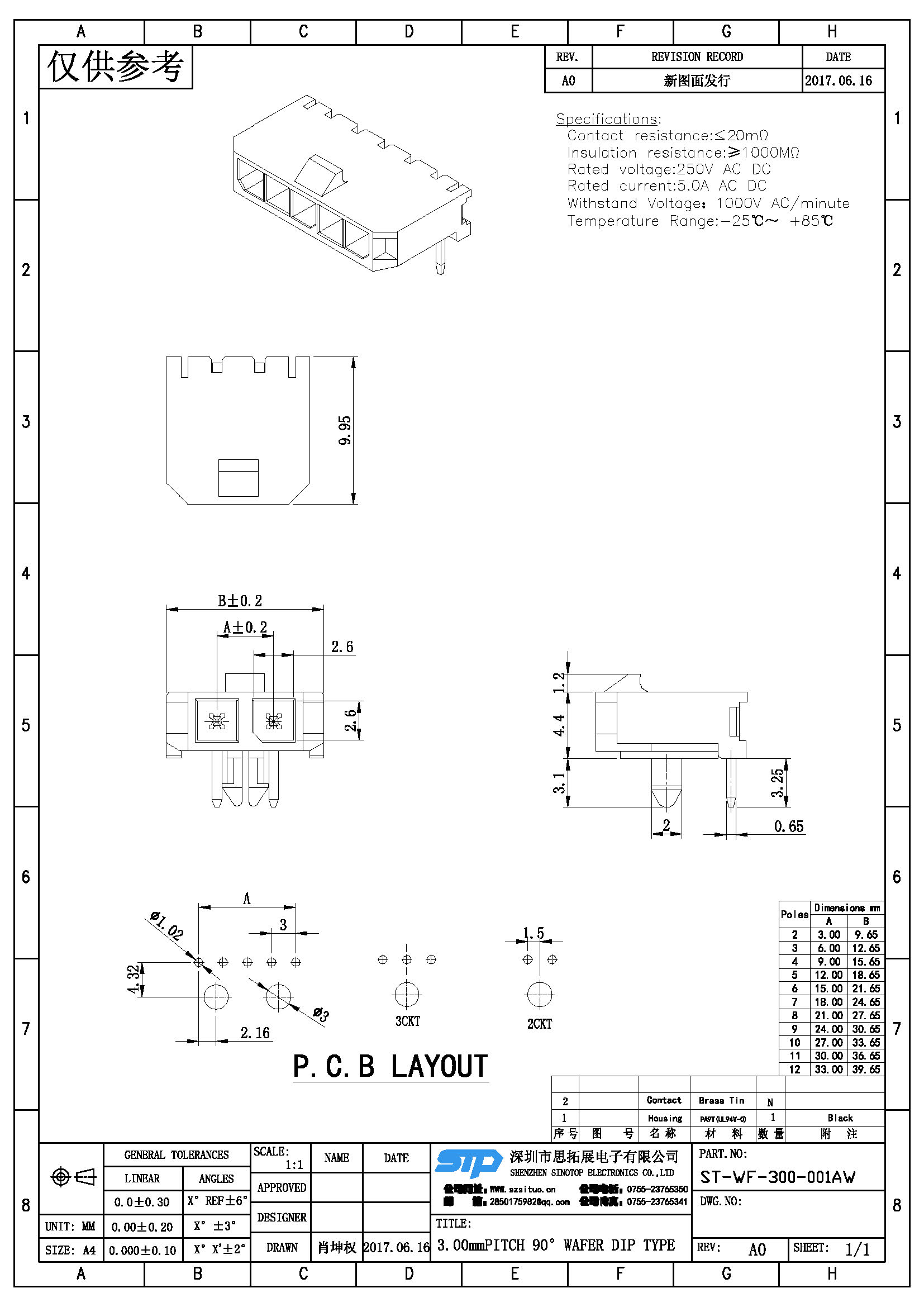 Spec:3.00mm PITCH 90° WAFER DIP TYPE