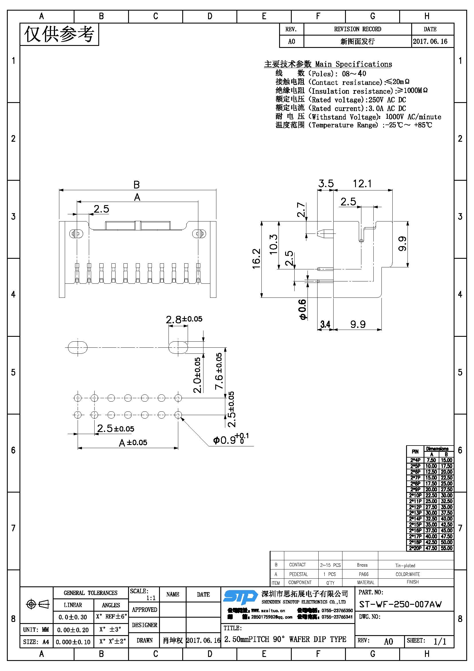 Spec:2.50mm PITCH 90° WAFER DIP TYPE