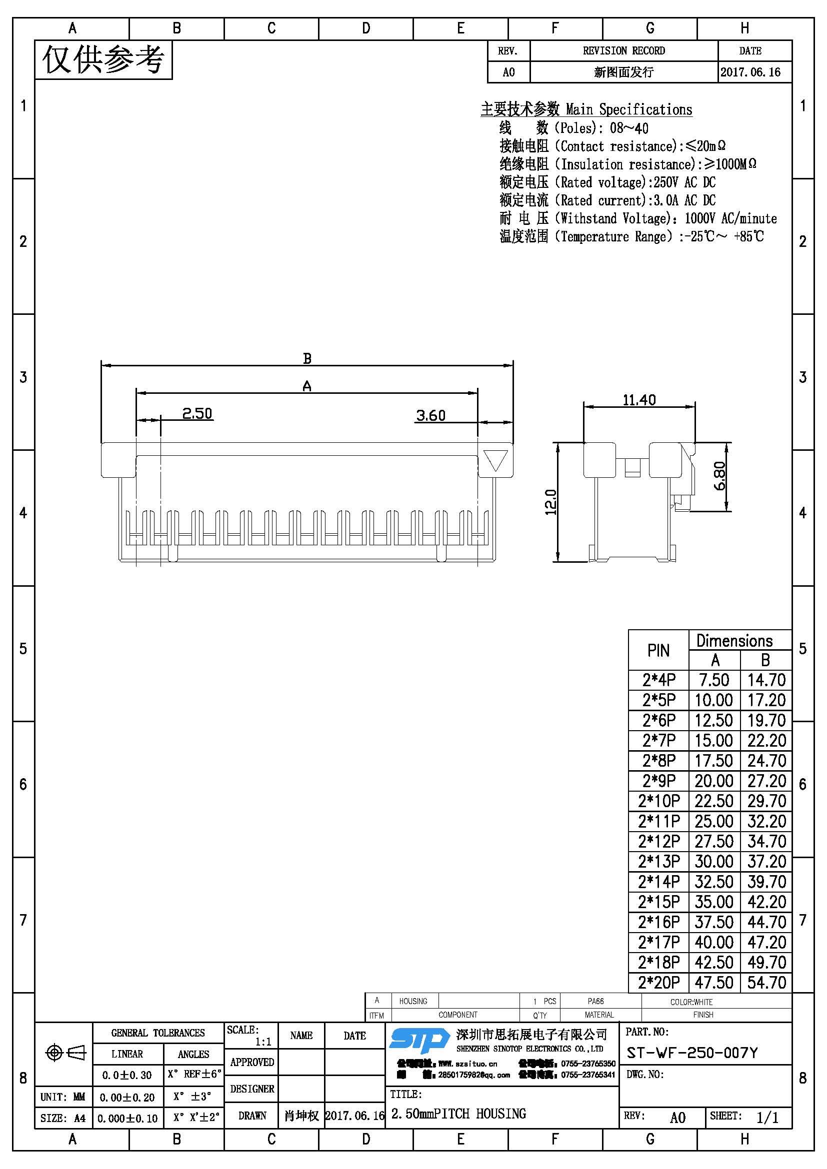 Spec:2.50mm PITCH HOUSING
