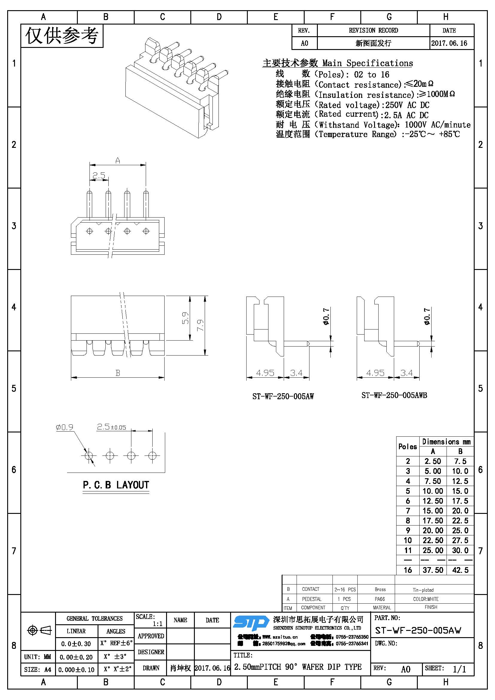 Spec:2.50mm PITCH 90° WAFER DIP TYPE