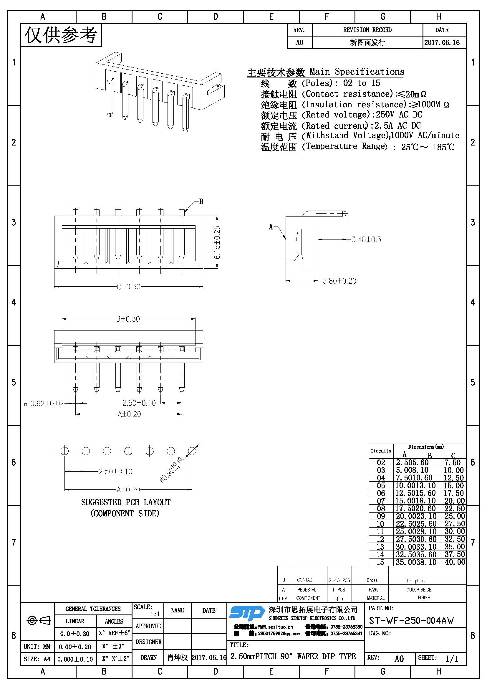 Spec:2.50mm PITCH 90° WAFER DIP TYPE