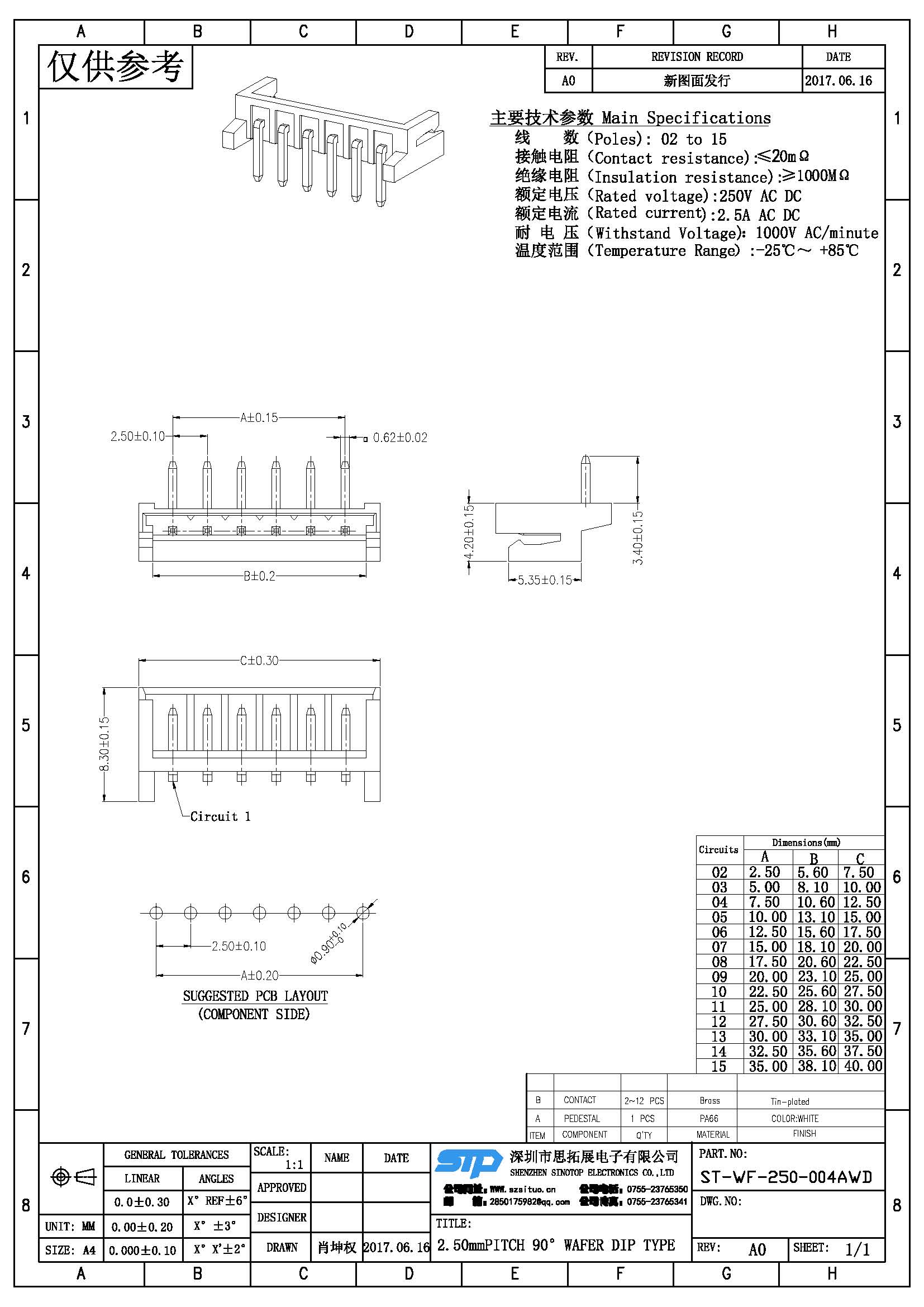 Spec:2.50mm PITCH 90° WAFER DIP TYPE