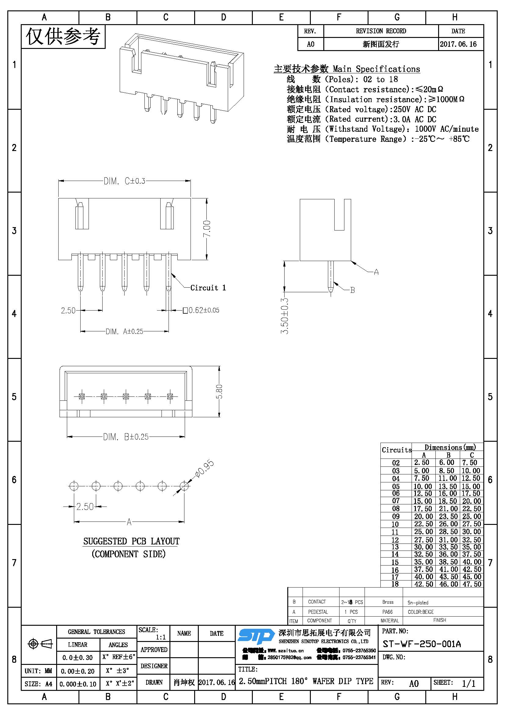 Spec:2.50mm PITCH 180° WAFER DIP TYPE