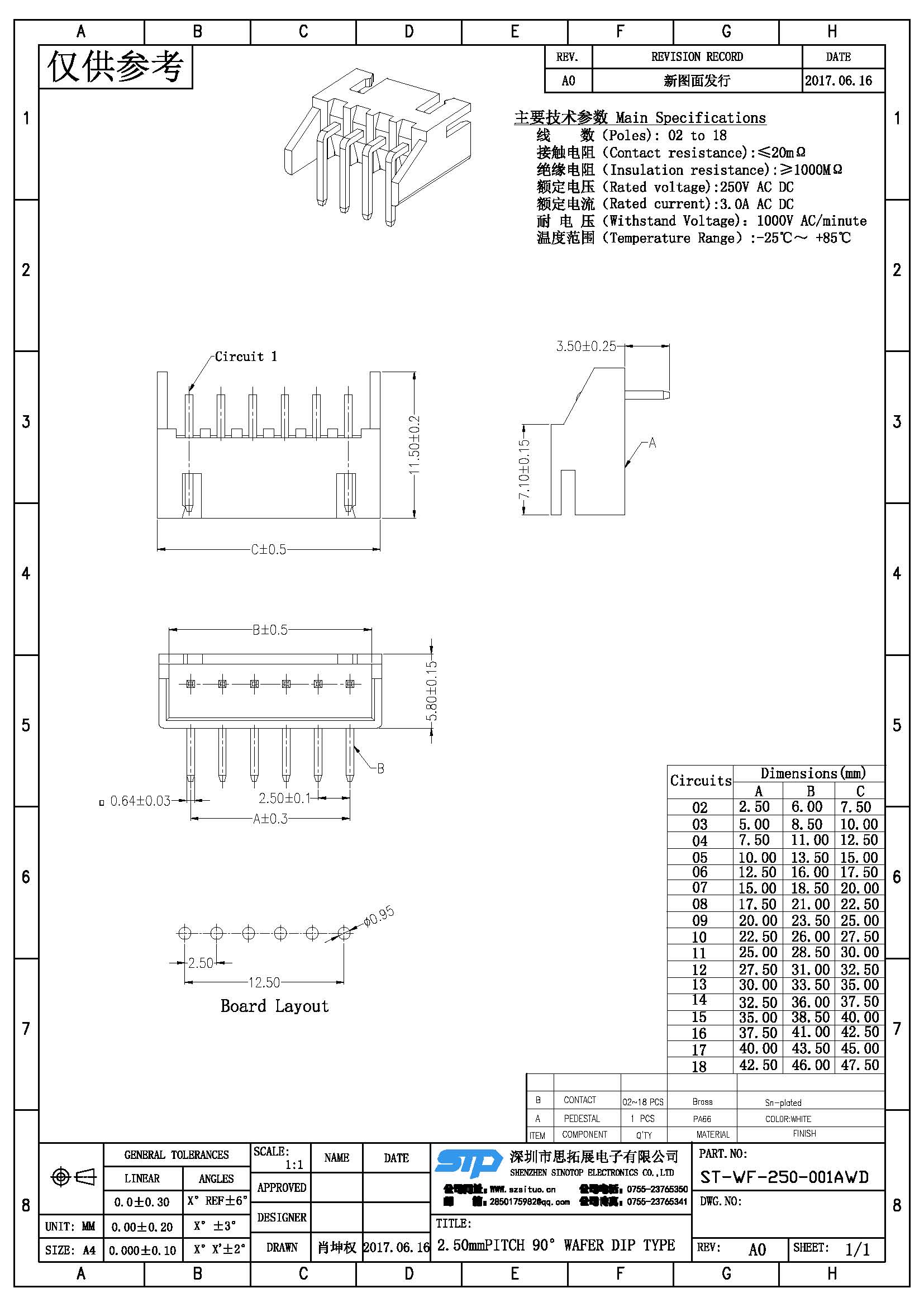 Spec:2.50mm PITCH 90° WAFER DIP TYPE