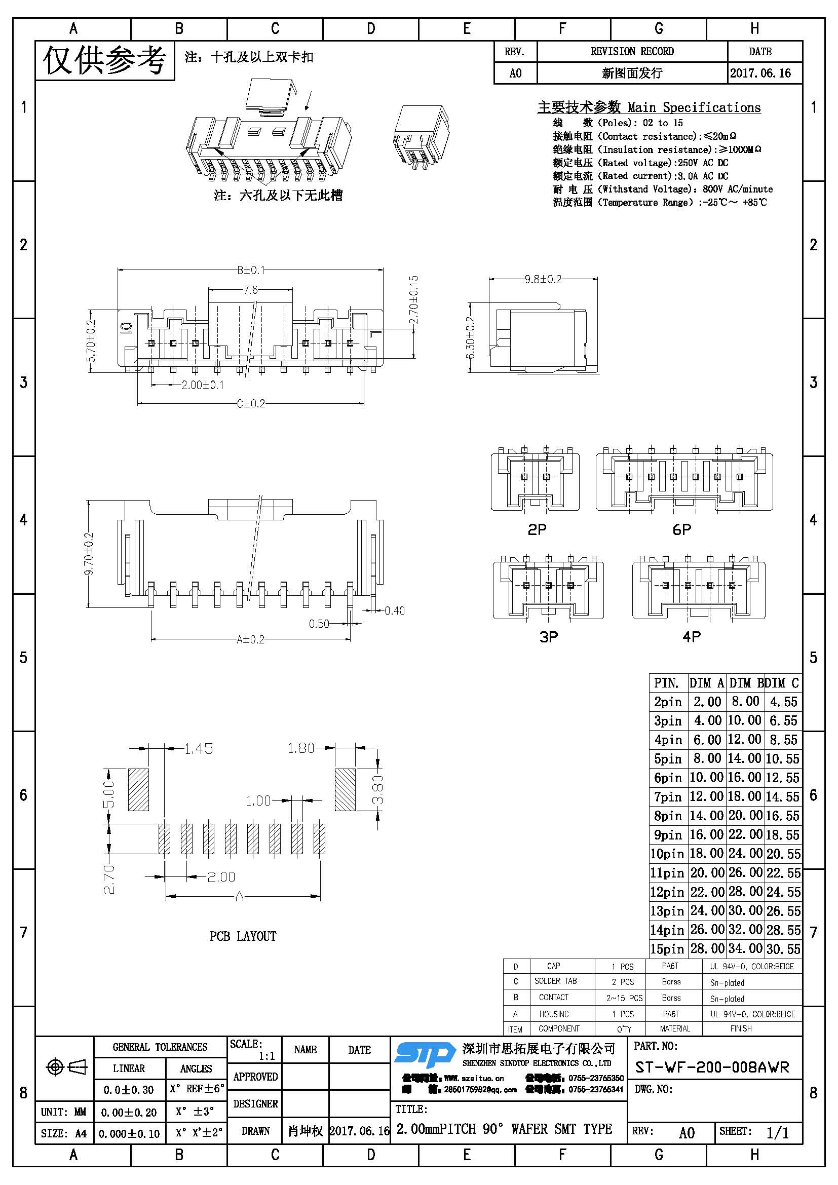 Spec:2.00mm PITCH 90° WAFER SMT TYPE