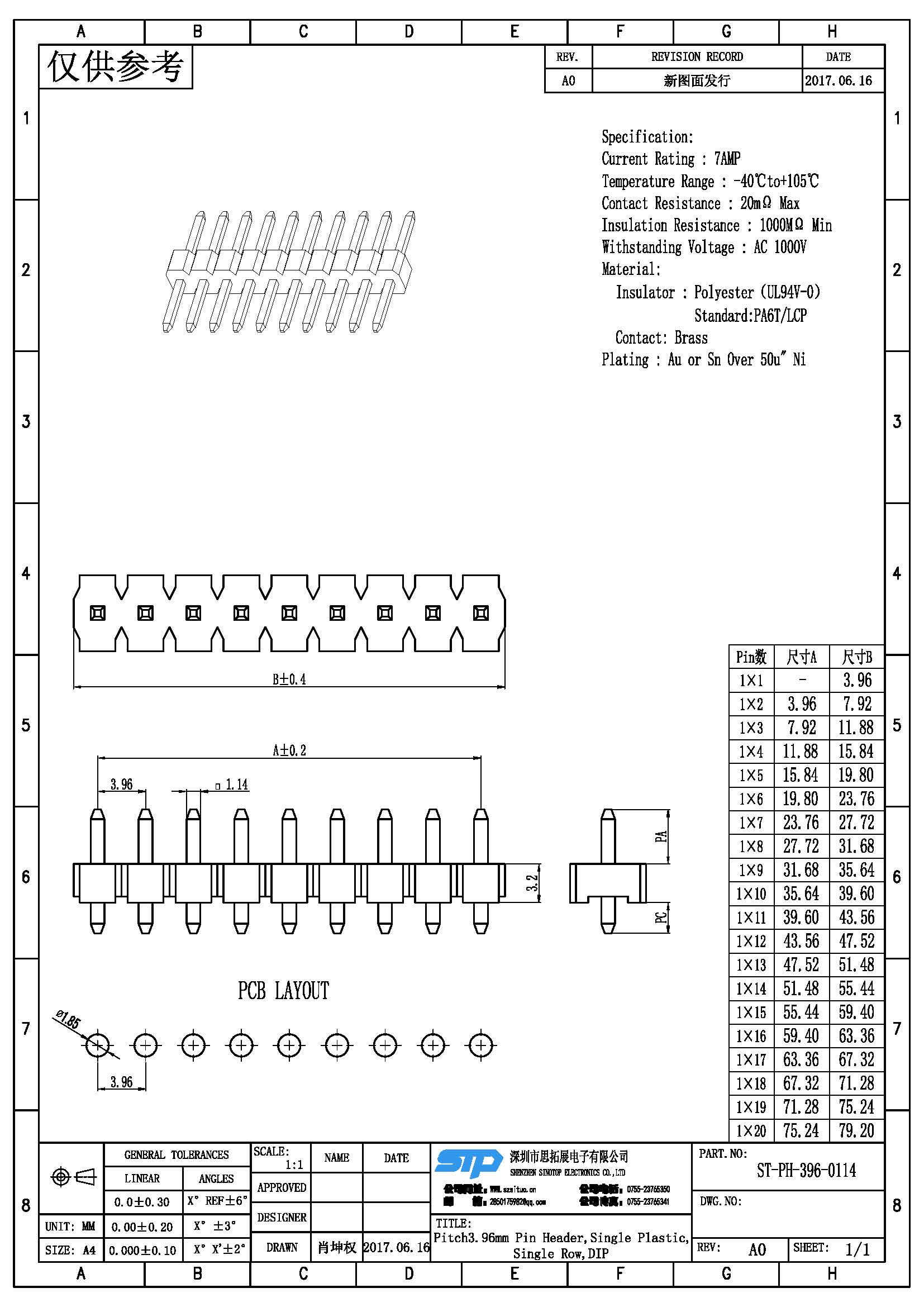Spec:PITCH3.96MM PIN Header,SINGLE Row,DIP Type