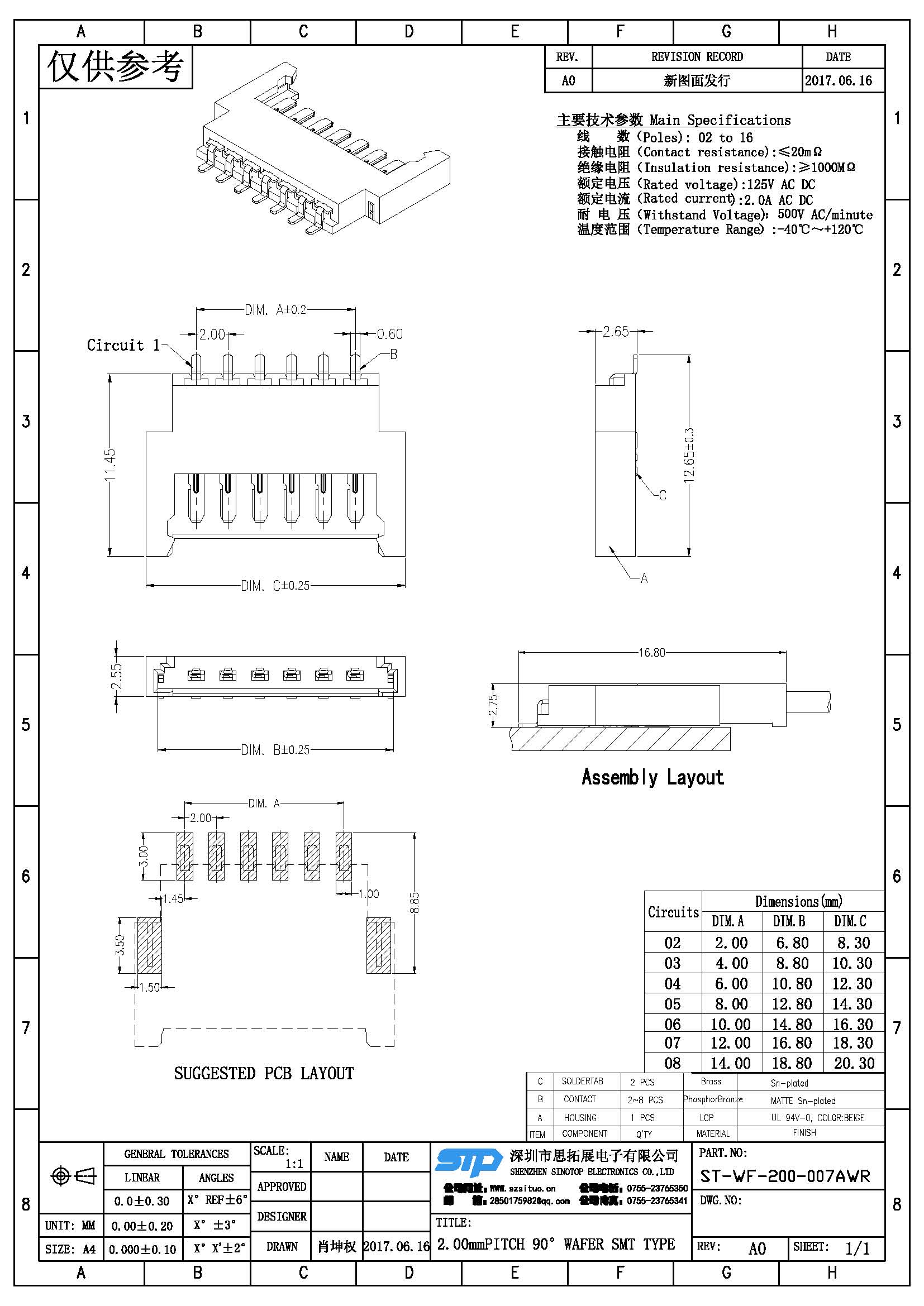 Spec:2.00mm PITCH 90° WAFER SMT TYPE