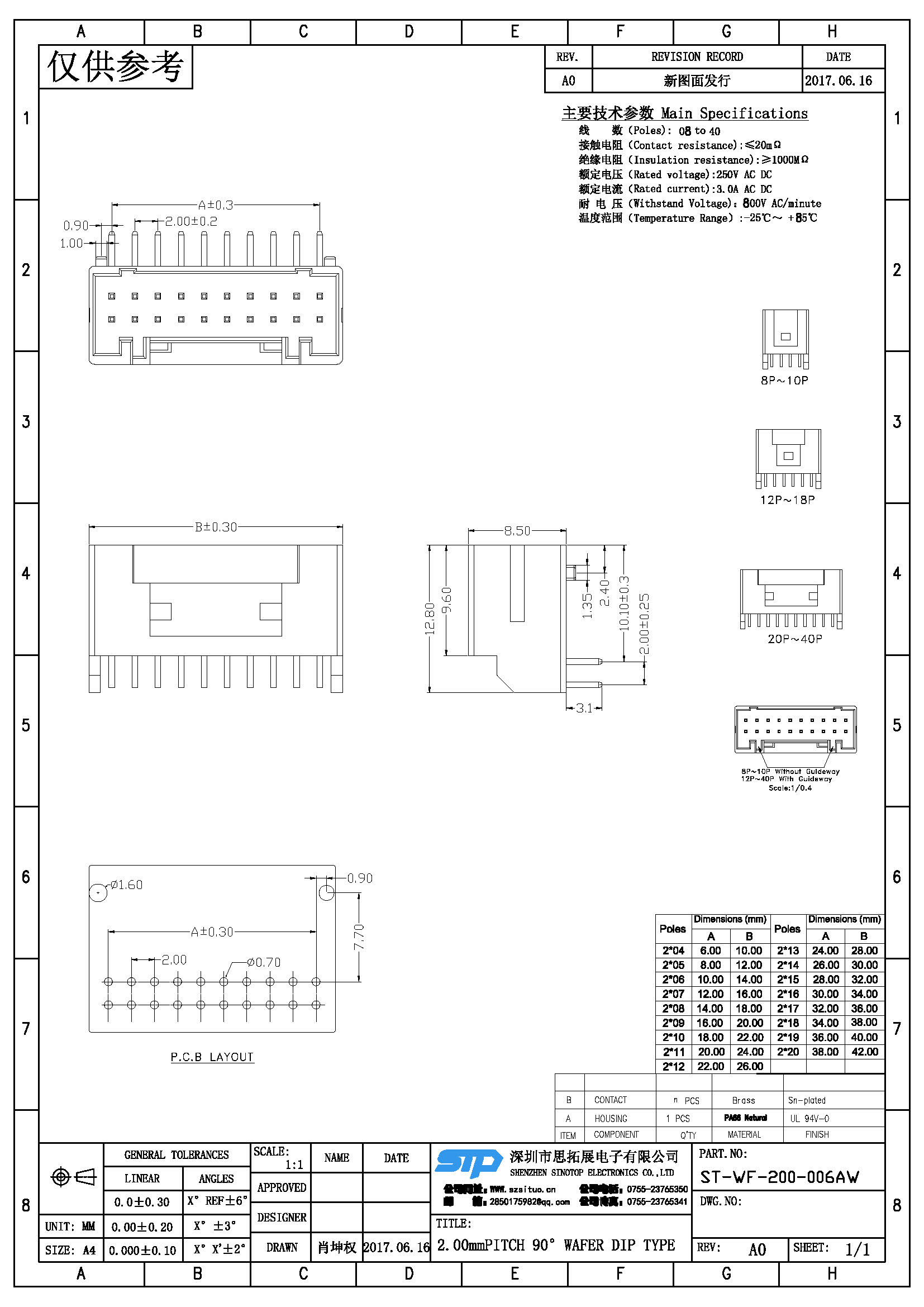 Spec:2.00mm PITCH 90° WAFER DIP TYPE