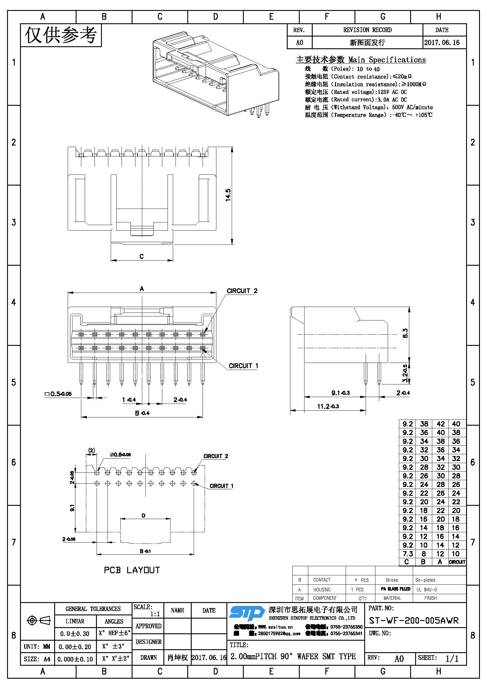 Spec:2.00mm PITCH 90° WAFER SMT TYPE