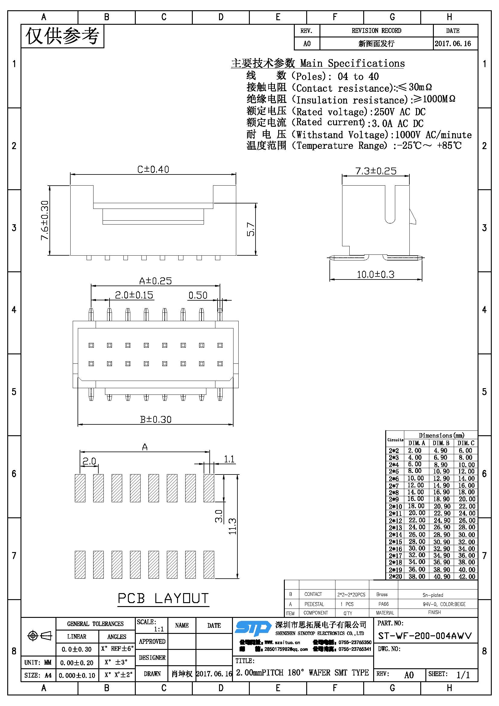 Spec:2.00mm PITCH 180° WAFER SMT TYPE