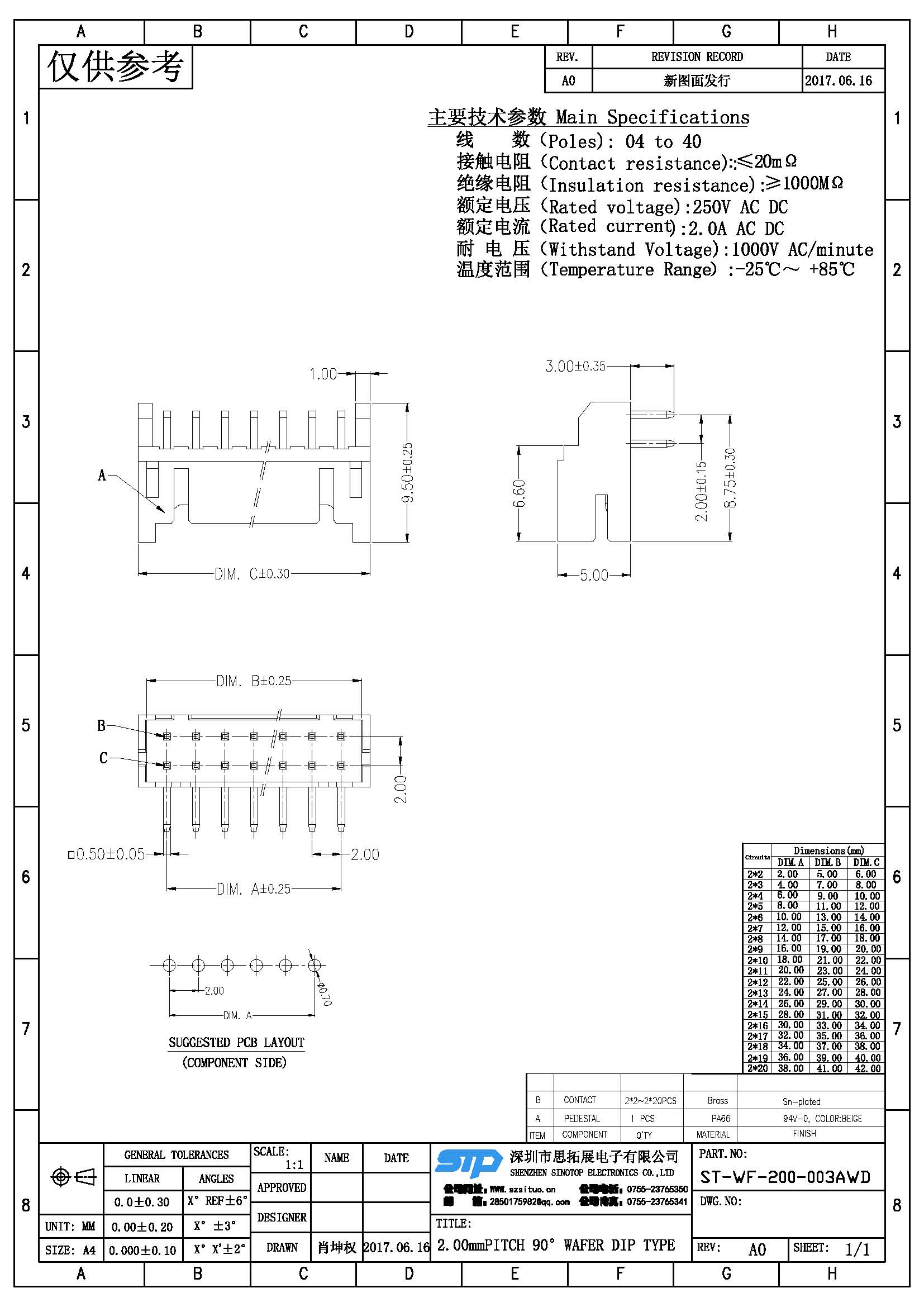Spec:2.00mm PITCH 90° WAFER DIP TYPE