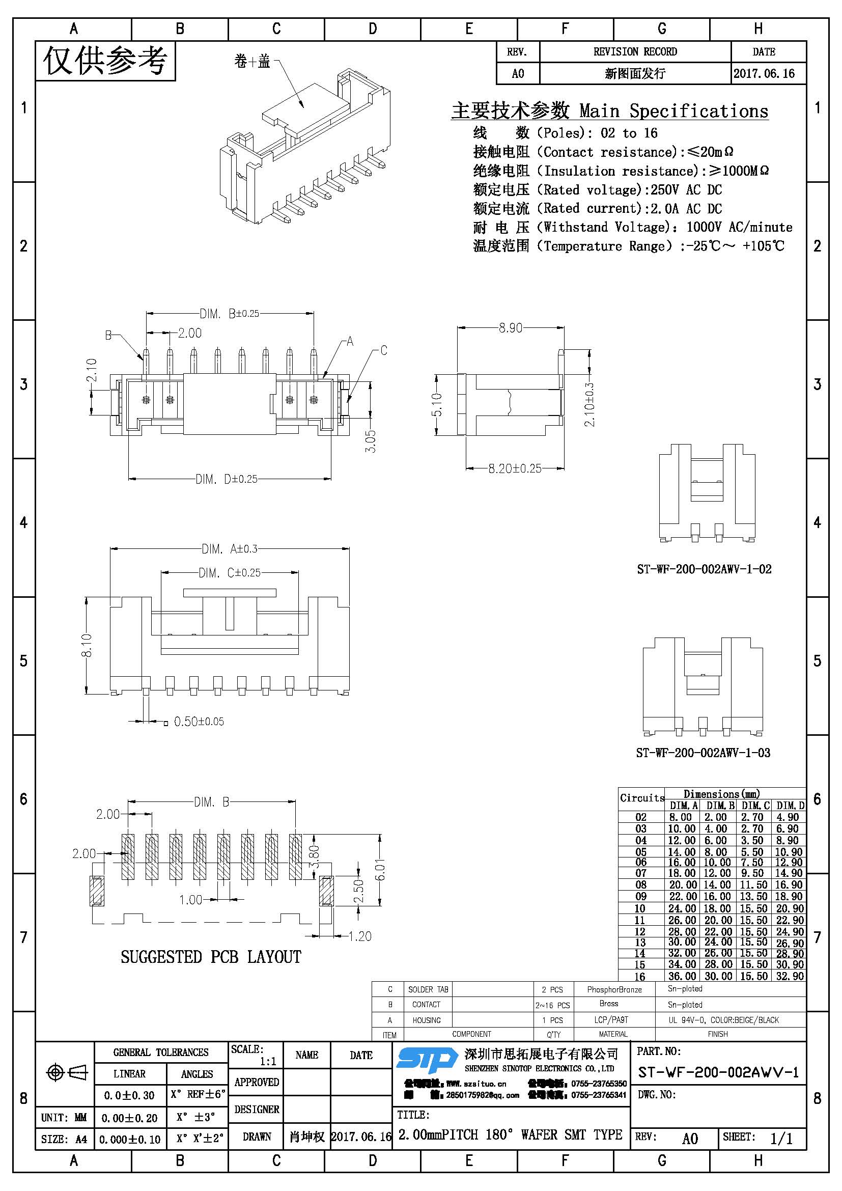 Spec:2.00mm PITCH 180° WAFER SMT TYPE