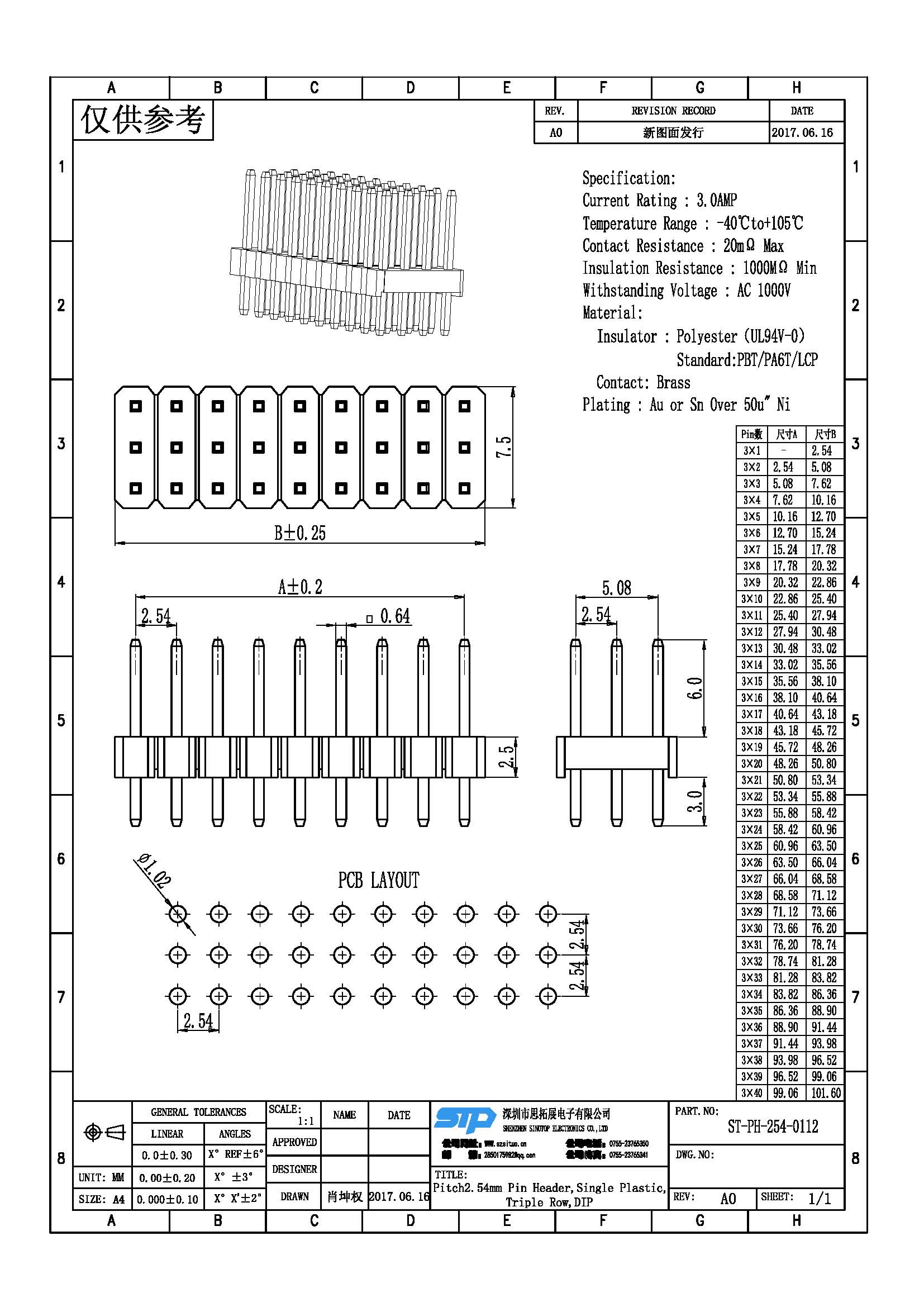 Spec:Pitch2.54mm Pin Header,Single Plastic,Triple Row,DIP