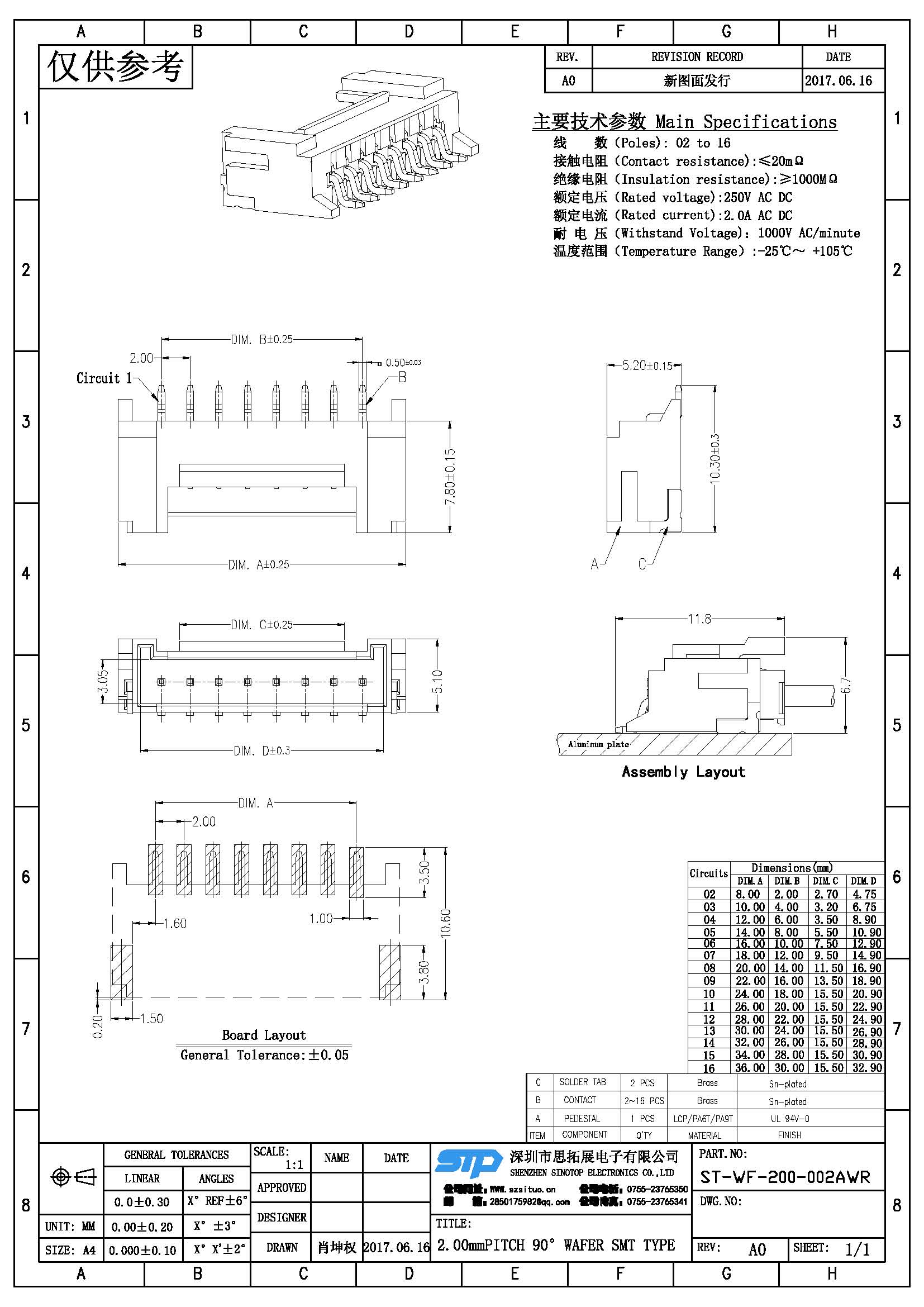 Spec:2.00mm PITCH 90° WAFER SMT TYPE