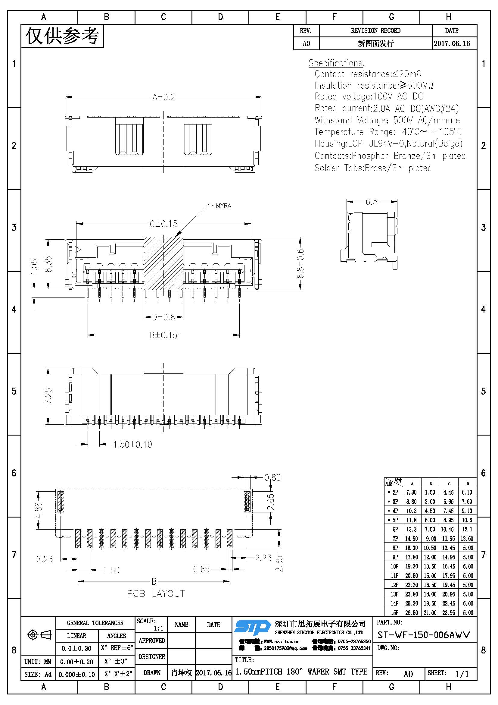 Spec:1.50mm PITCH 180° WAFER SMT TYPE