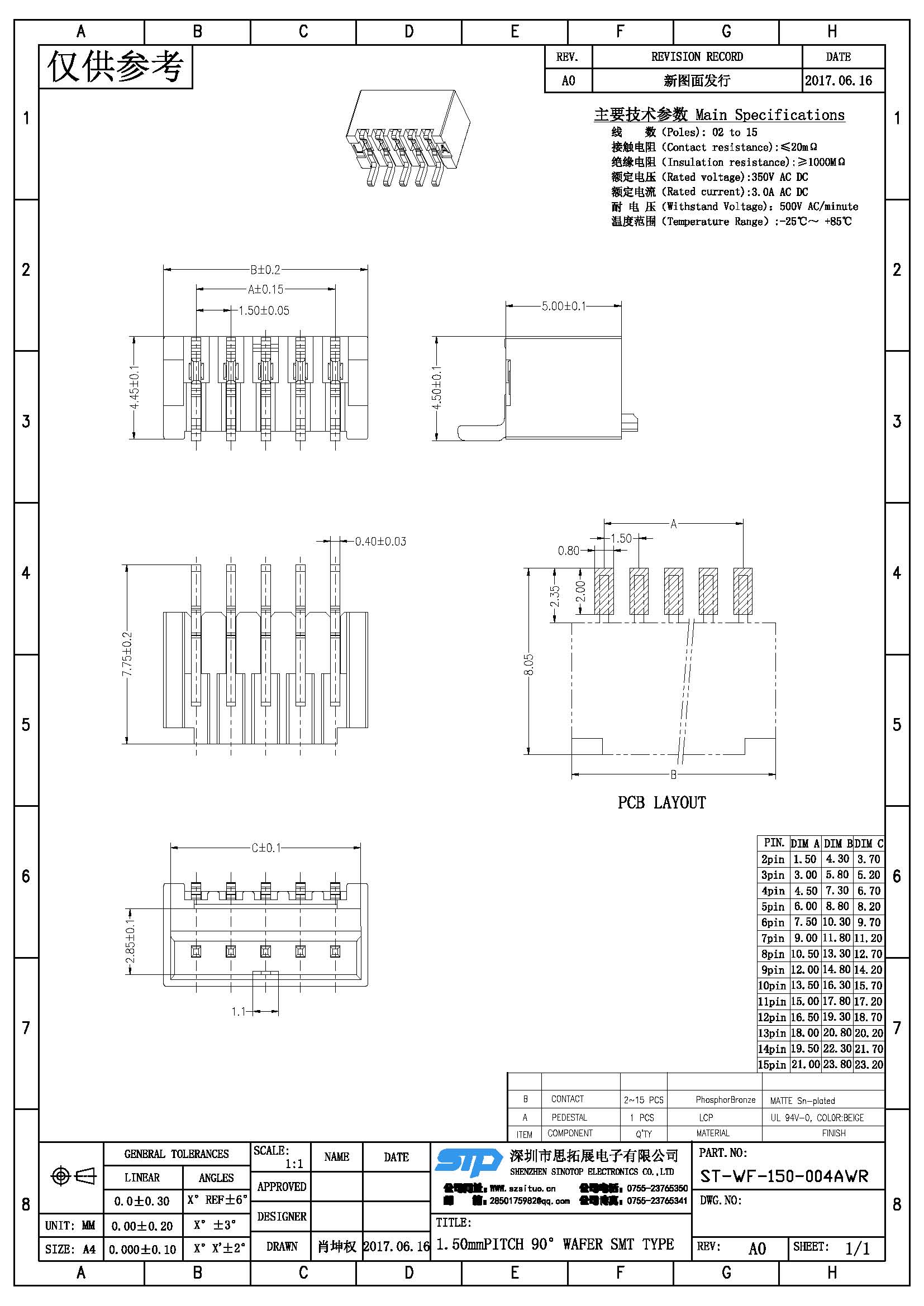 Spec:1.50mm PITCH 90° WAFER SMT TYPE