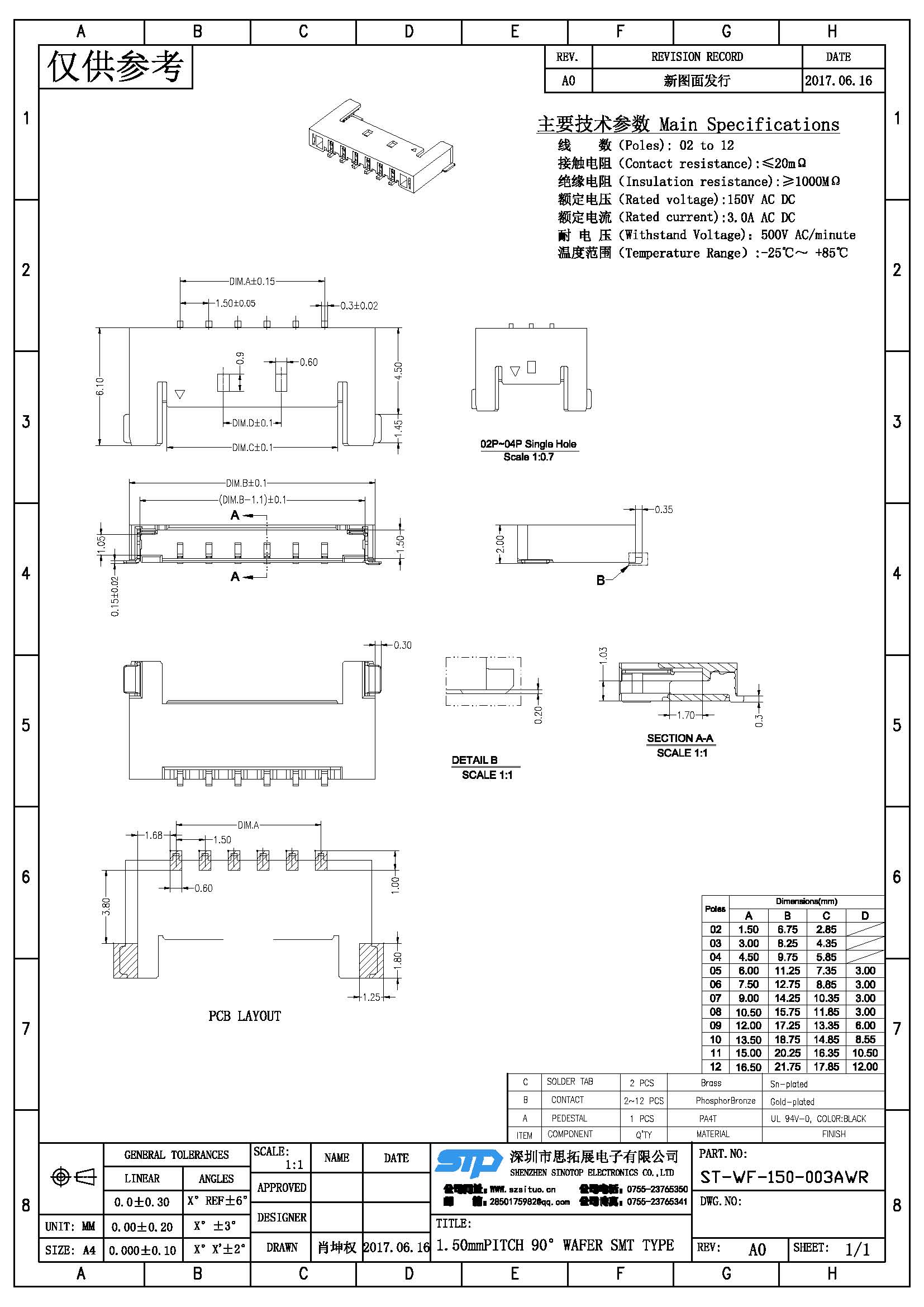 Spec:1.50mm PITCH 90° WAFER SMT TYPE