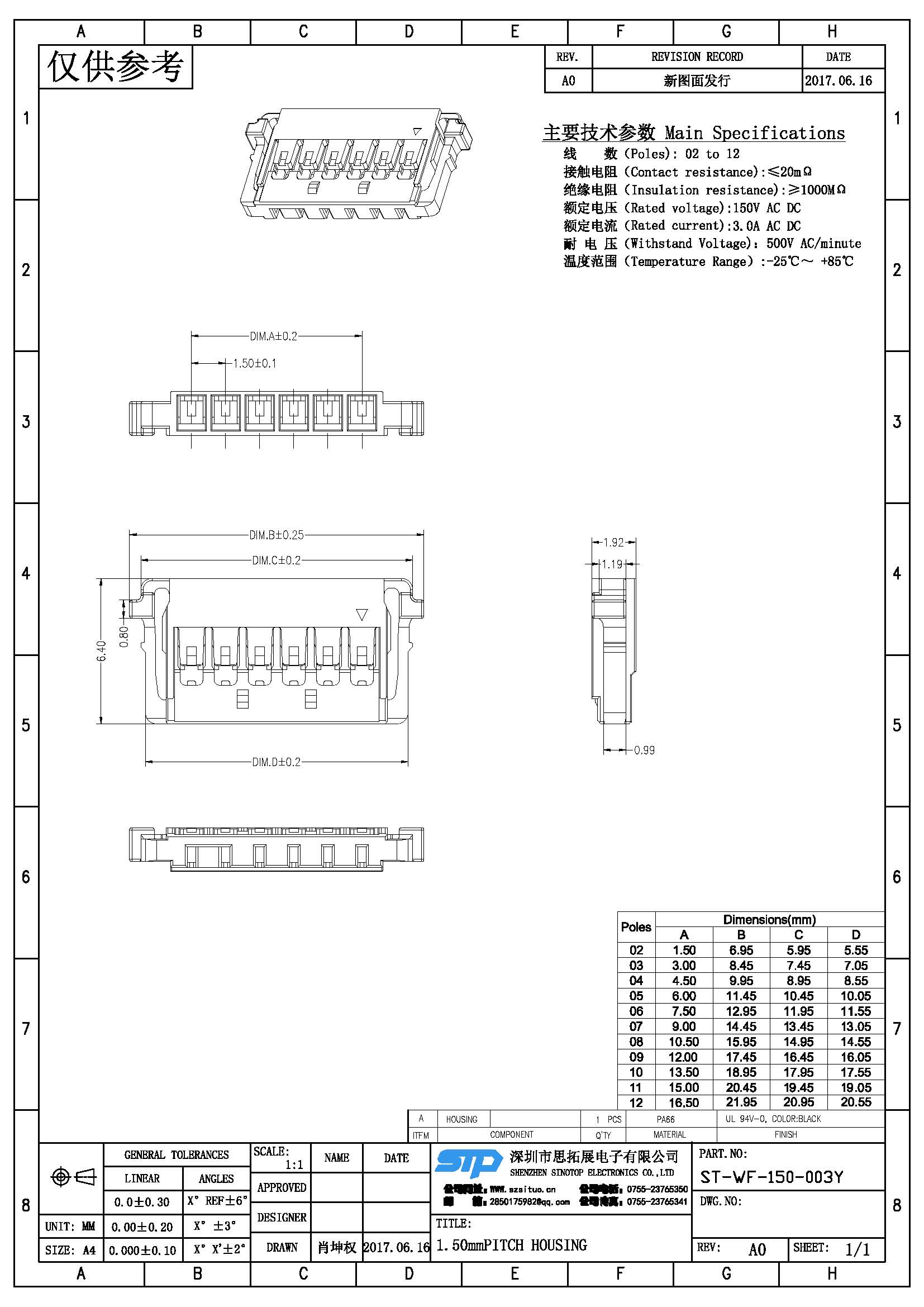 Spec:1.50mm PITCH HOUSING