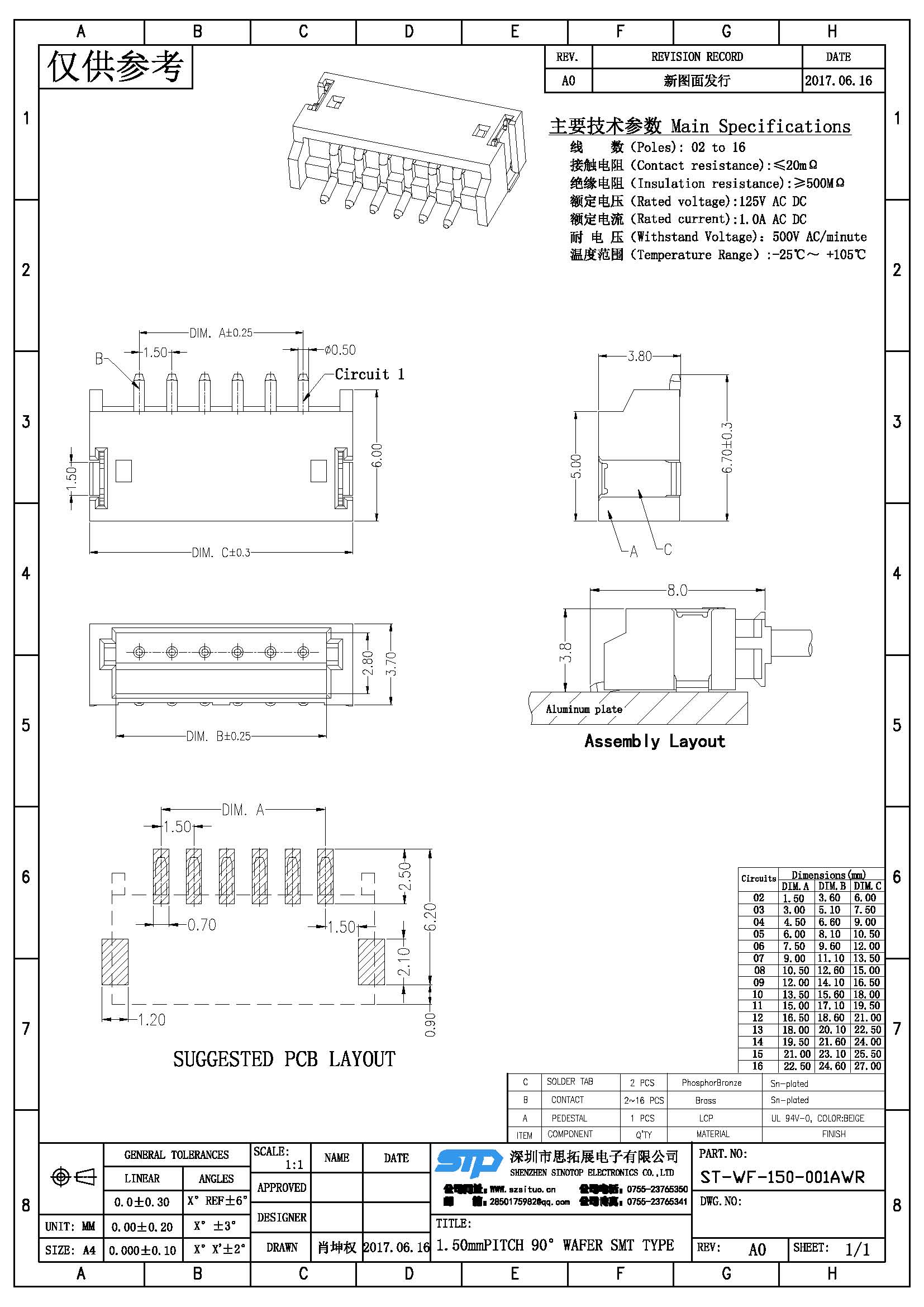 Spec:1.50mm PITCH 90° WAFER SMT TYPE
