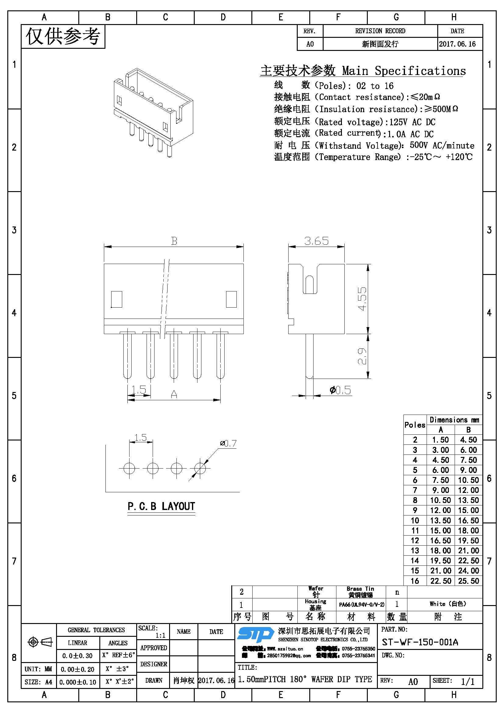 Spec:1.50mm PITCH 180° WAFER DIP TYPE
