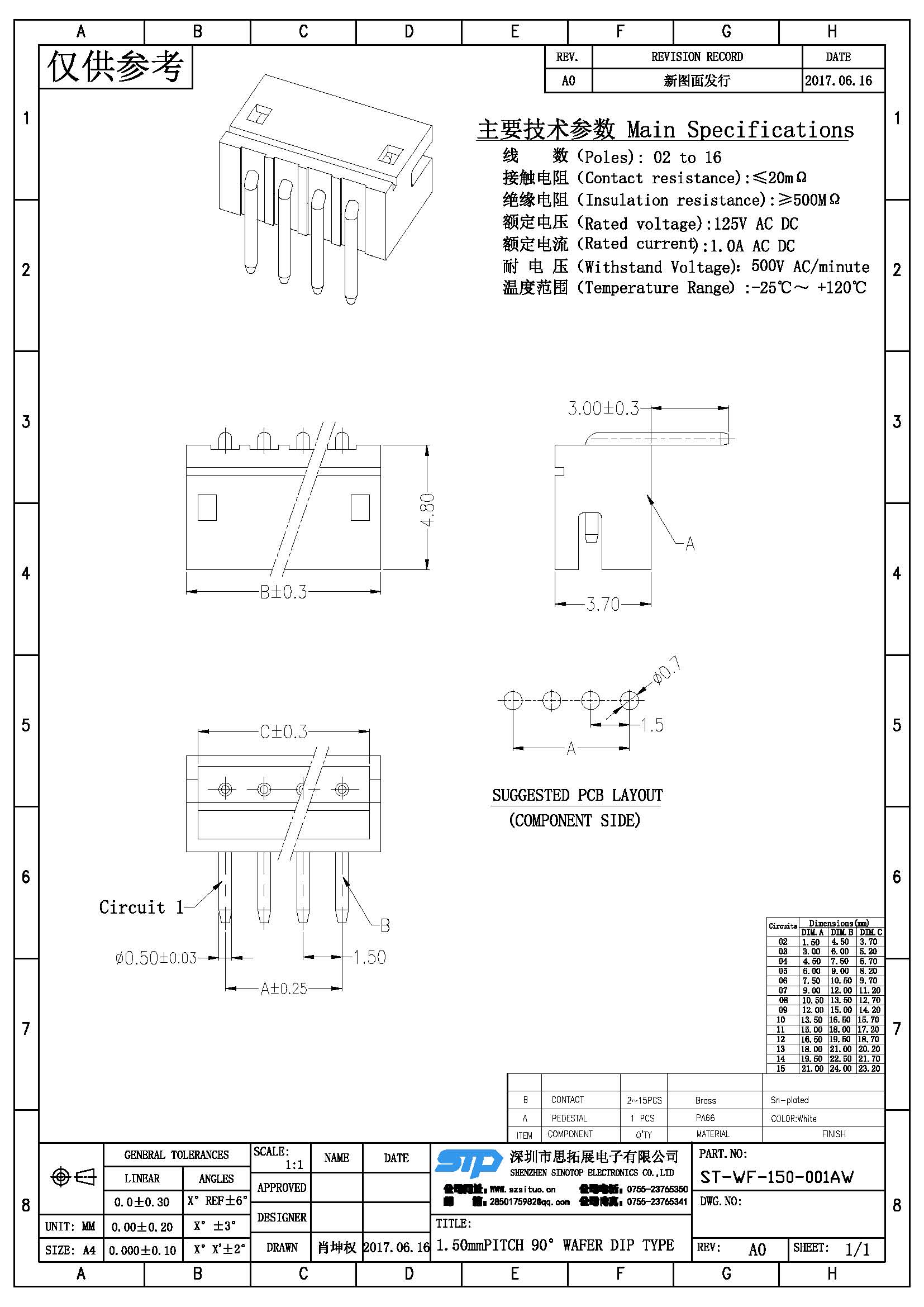 Spec:1.50mm PITCH 90° WAFER DIP TYPE