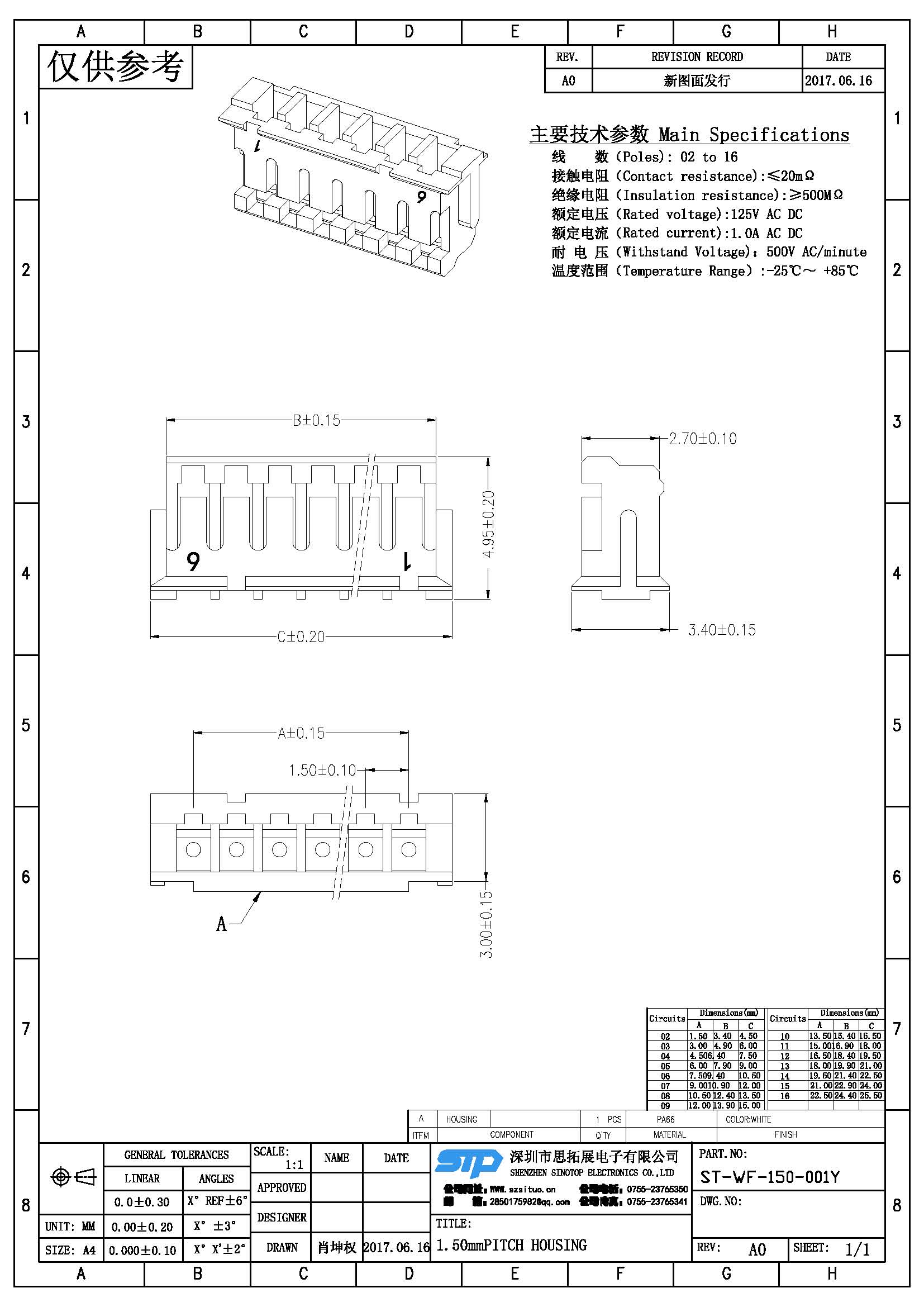 Spec:1.50mm PITCH HOUSING